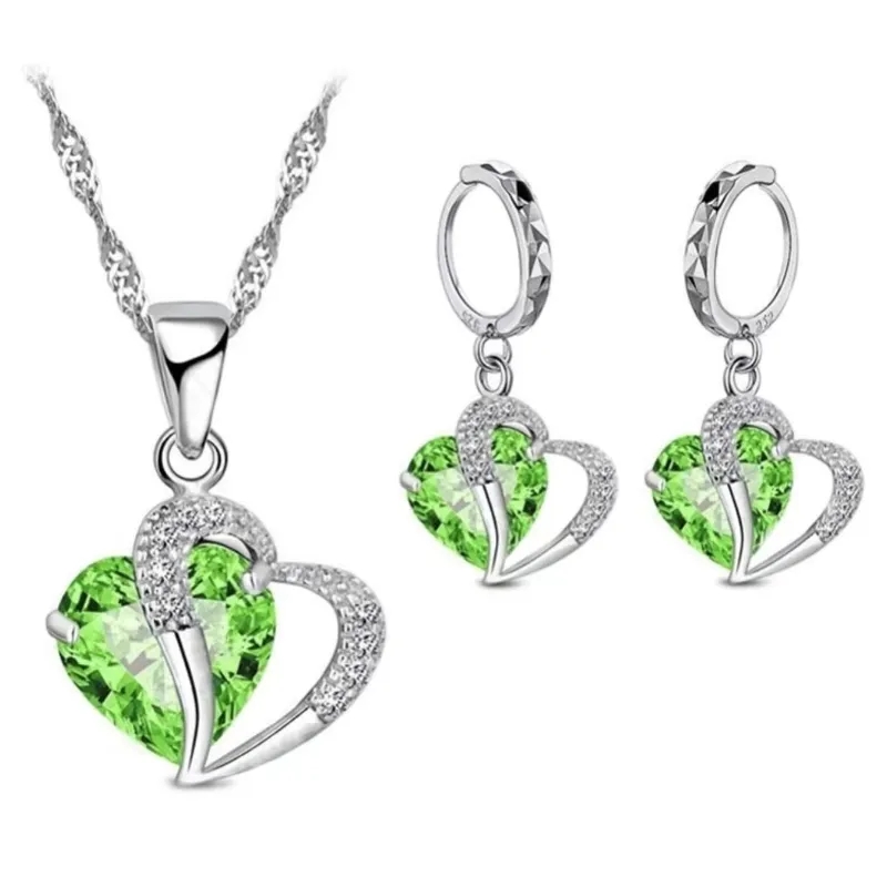 925 Sterling Silver Women's Luxury Jewelry Set: Heart Design Necklace, Pendant, Earrings & Cartilage Piercing For Weddin 1
