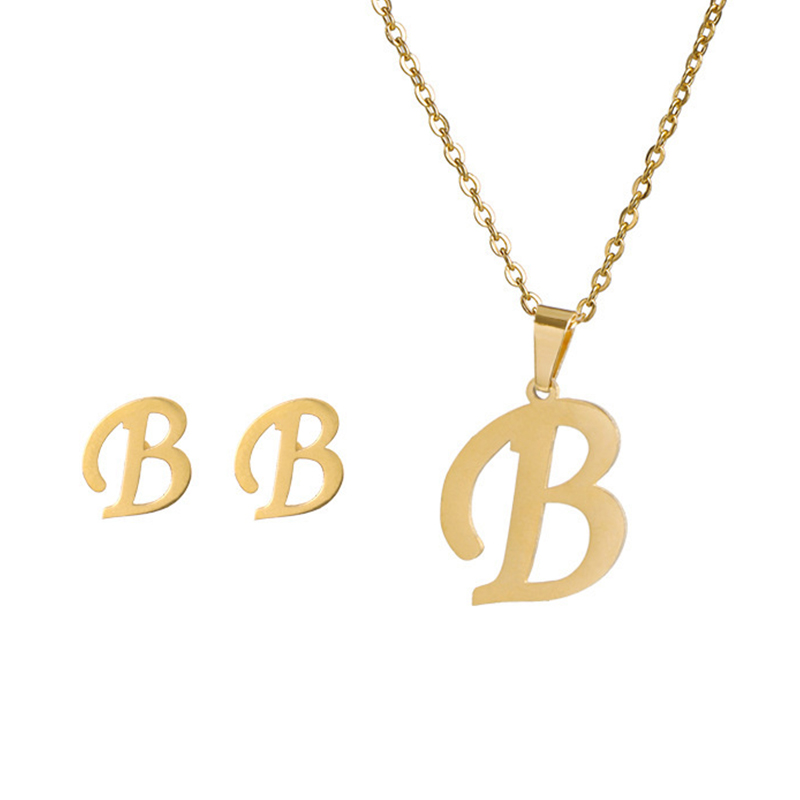 Stainless Steel A Z Alphabet Initial Necklace & Earrings Set For Women Personalized Fashion Jewelry Gift b