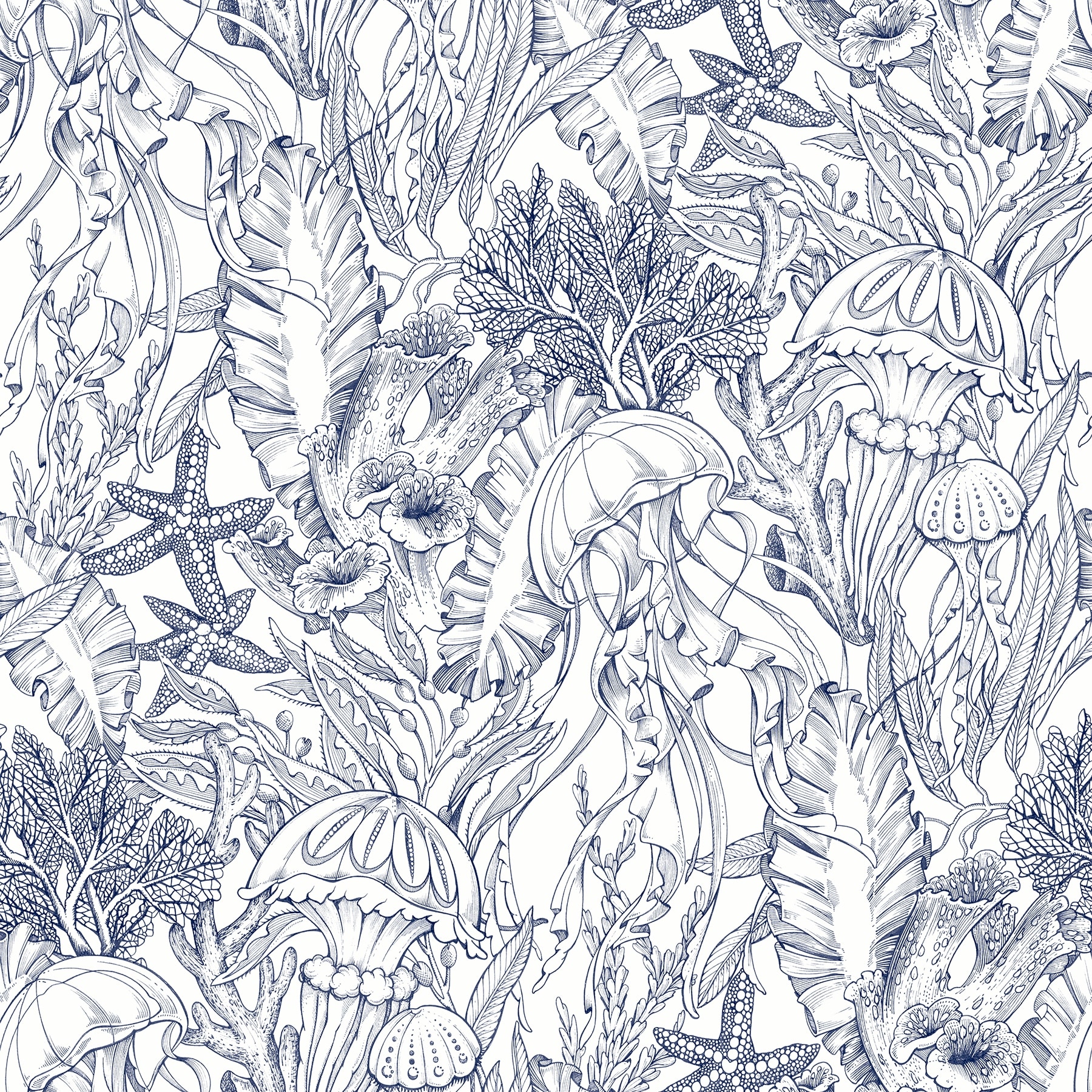 NuWallpaper Under the Sea Navy Blue Peel and Stick Wallpaper - N/A