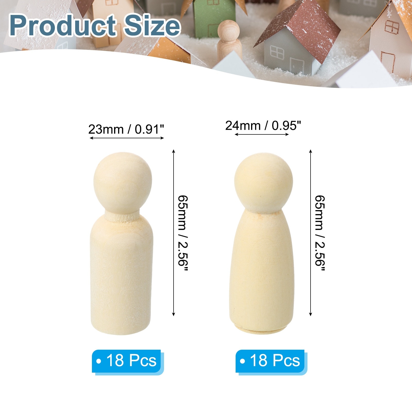 Wooden Pegs, Wood Pegs People Unfinished Bodies Natural Wood Figures for Painting DIY Crafts Art Graffiti - Wood Color