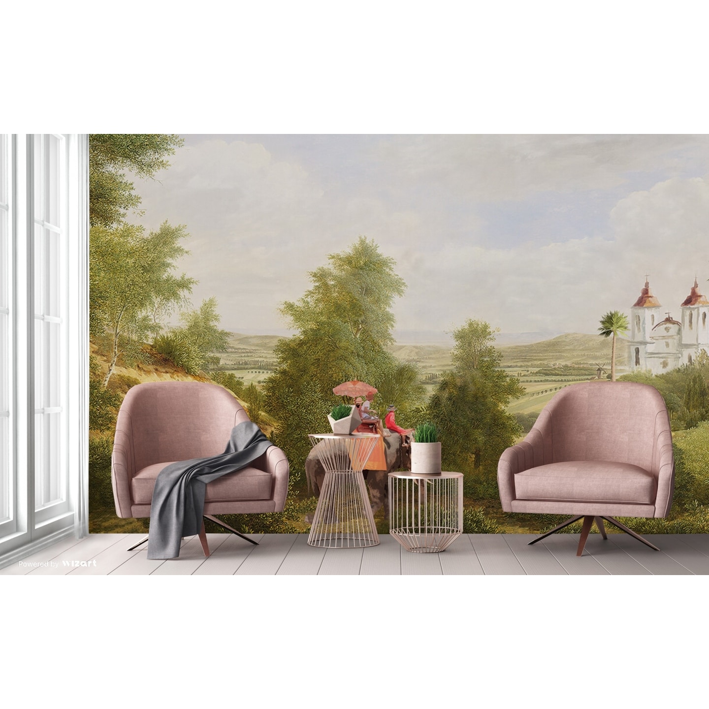 Vintage Scenic Wallpaper Mural with Elephant Ride and Serene Countryside Landscape
