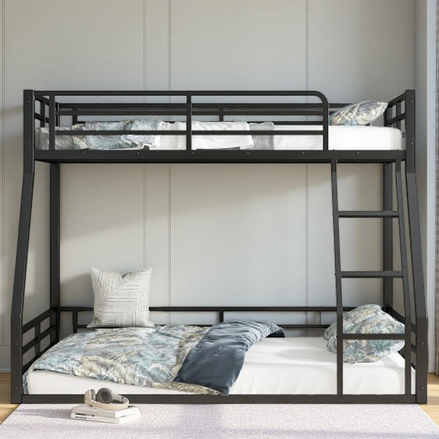 Twin Over Full Metal Floor Bunk Bed Frame with Guardrails, Heavy-Duty Noise-Reduced Design