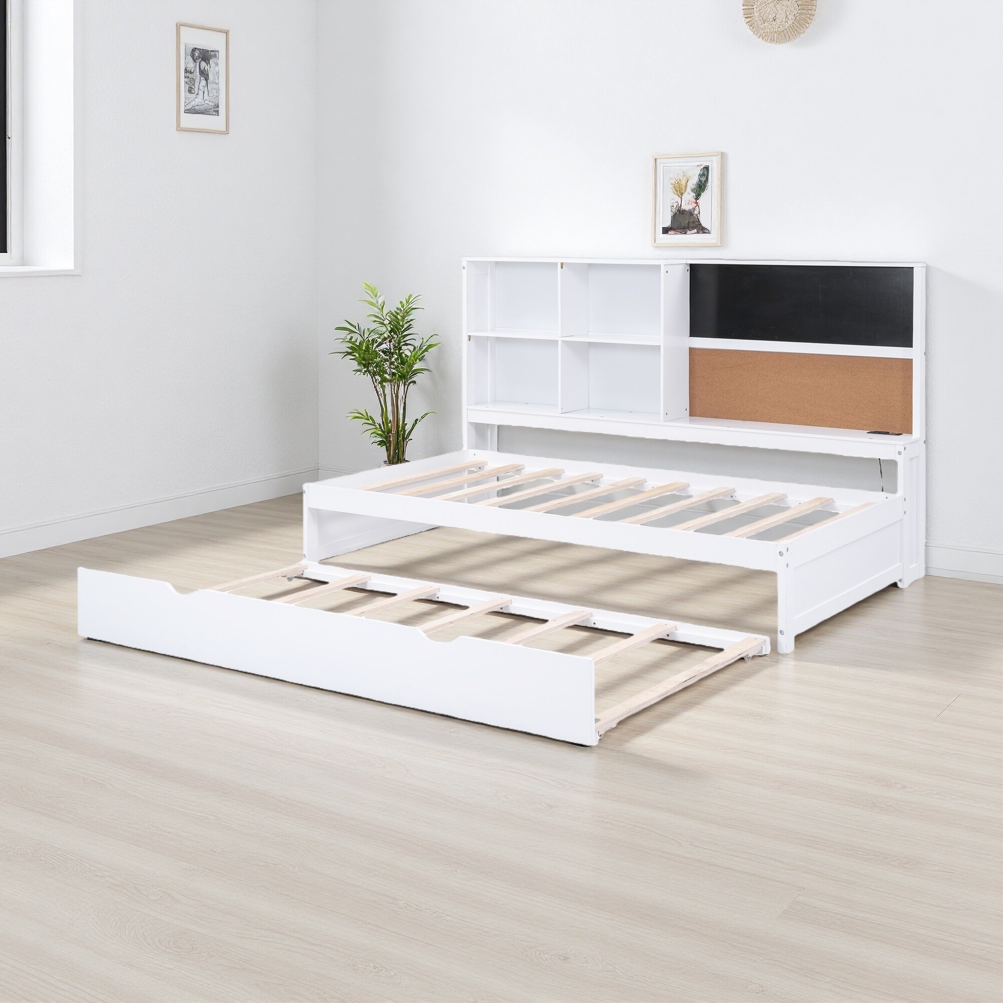 Twin Size Pine Daybed with Blackboard, USB Charging & Trundle (350lb Capacity)