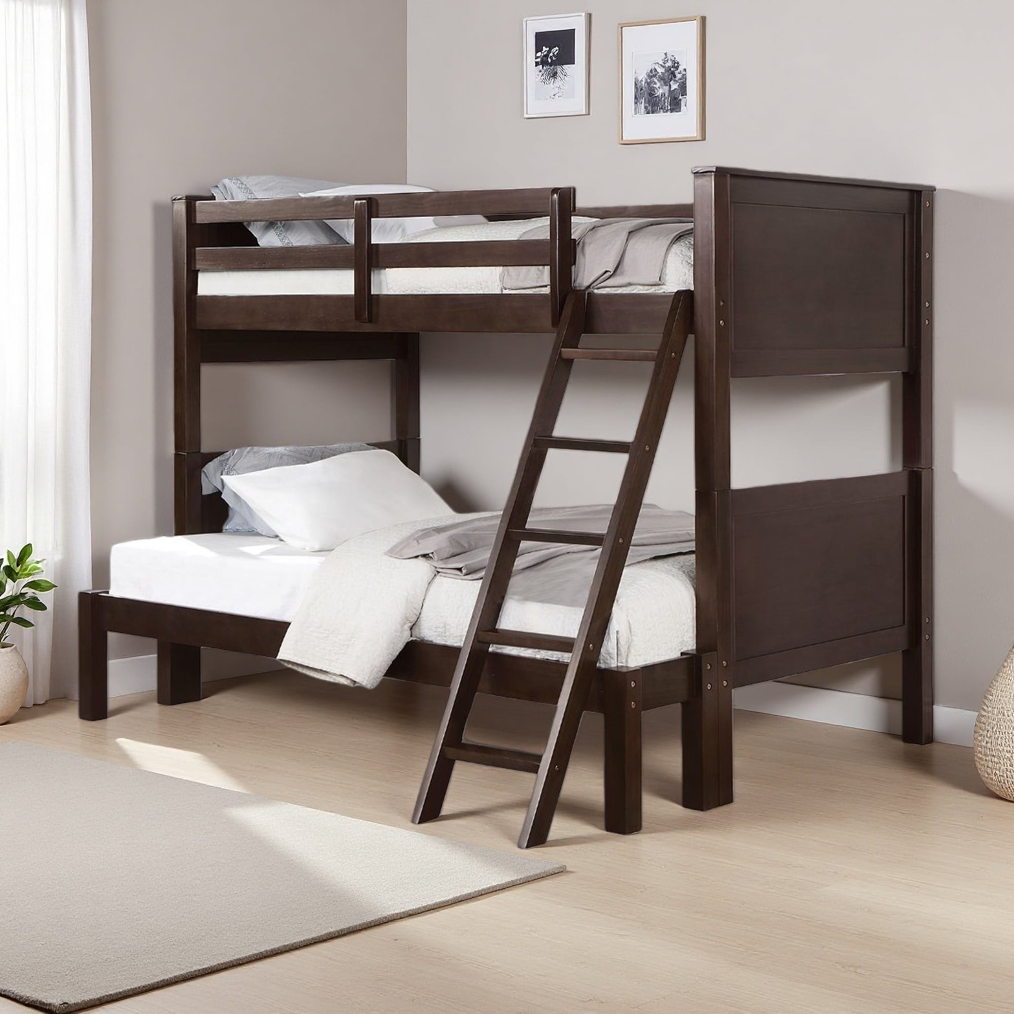 Twin over Full Wood Bunk Bed with Footboard Ladder