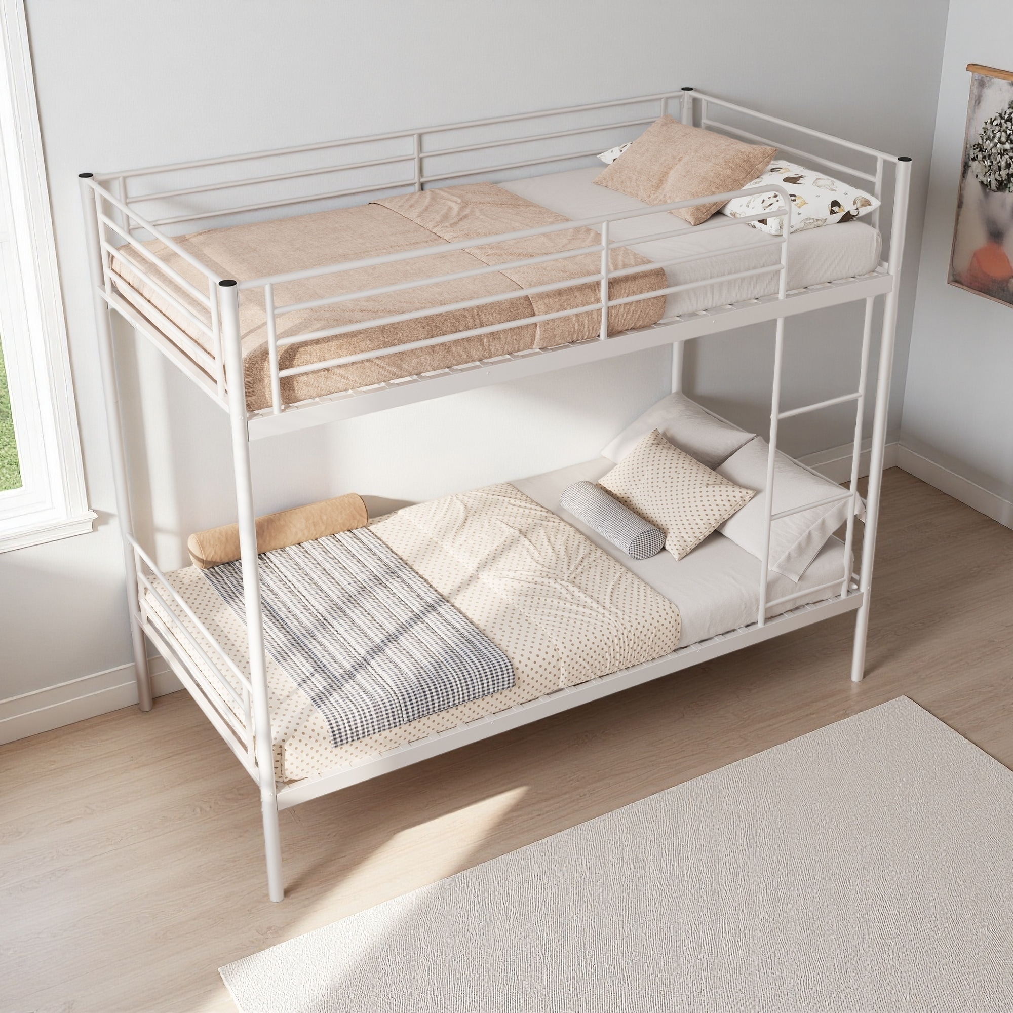 Twin over Twin Metal Low-Profile Bunk Bed with Integrated Ladder, Safety Guardrail and Noise Reduction
