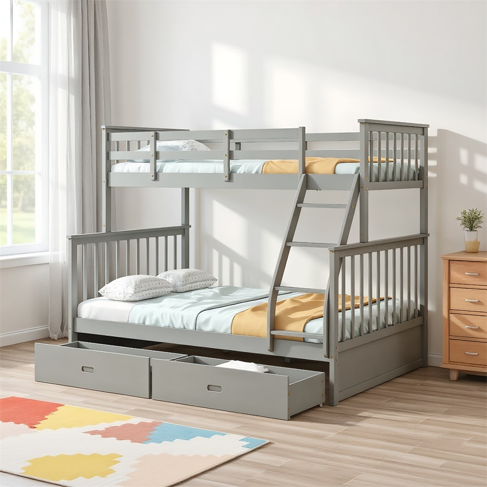 Twin Over Full Bunk Bed w/Storage Drawer,Wooden Bunk Bed w/Guard Rails