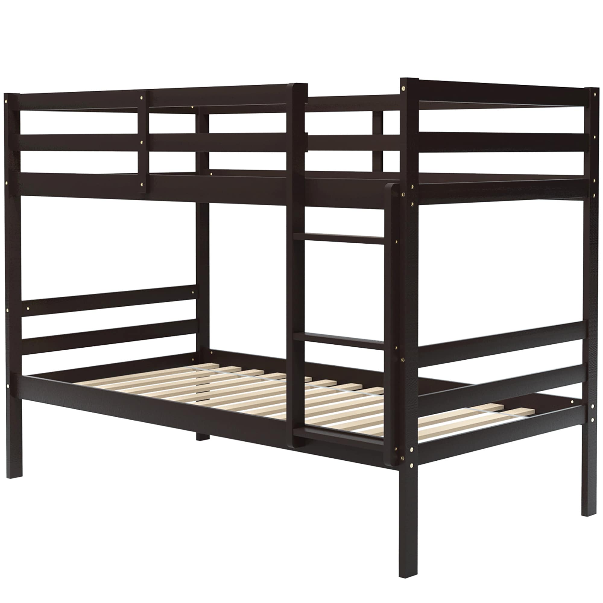 Wooden Twin Bunk Beds with Ladder and Safety Rail