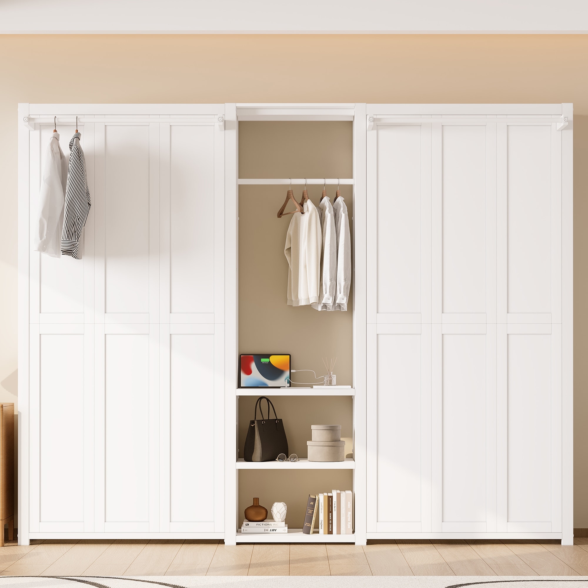 2 in 1 Design Foldable Murphy Bed, Twin and Twin Platform Beds with Wardrobes, Headboards, Open Shelves and Power Outlets