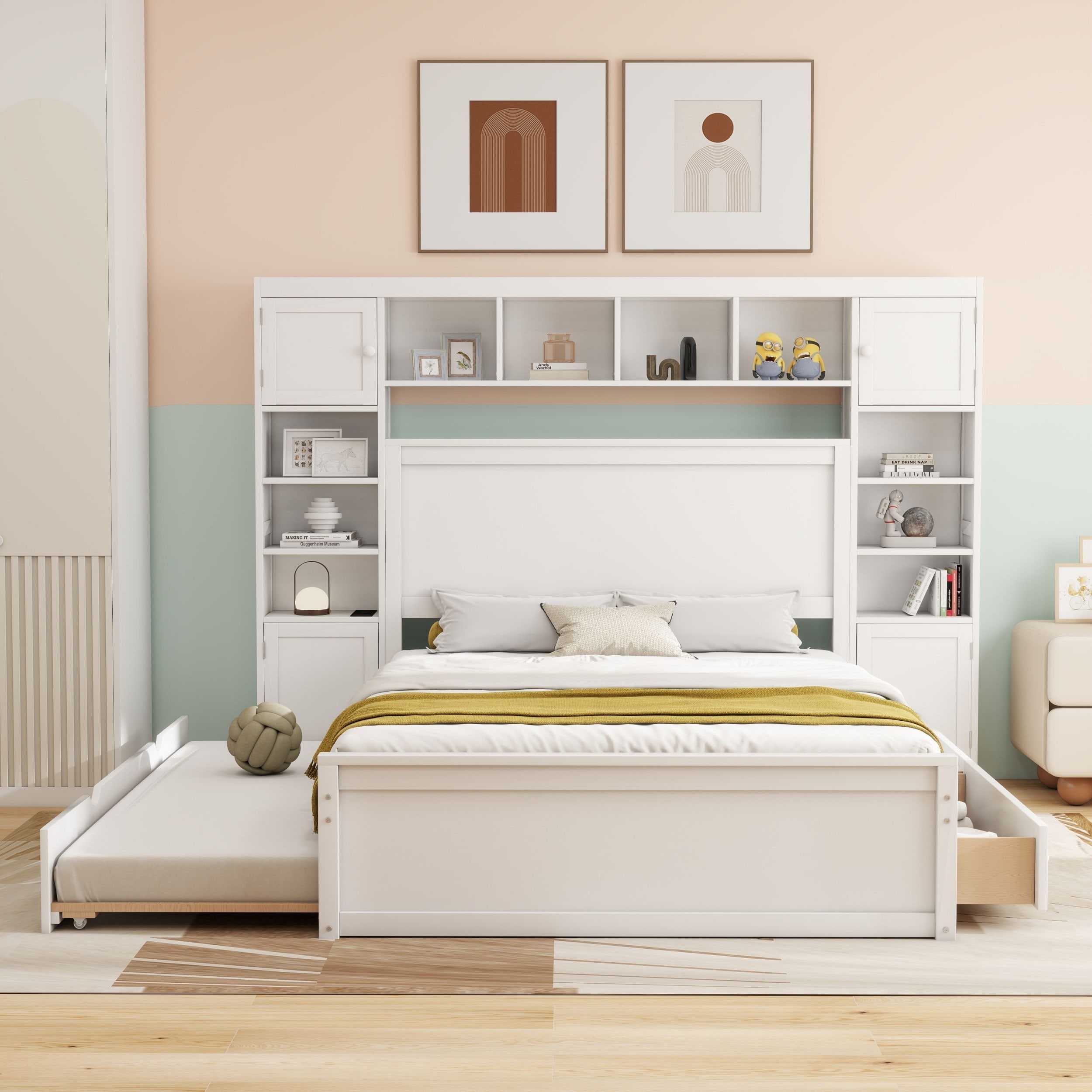 Twin Over Full Bunk Bed Wheels Bottom Bed w6 Drawers, 3 Shelves,White