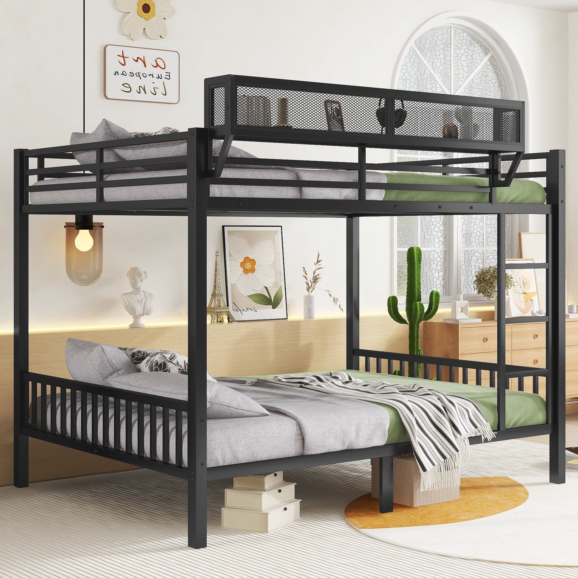 Queen Over Queen Metal Bunk Bed Frame with Ladder and Storage Shelf
