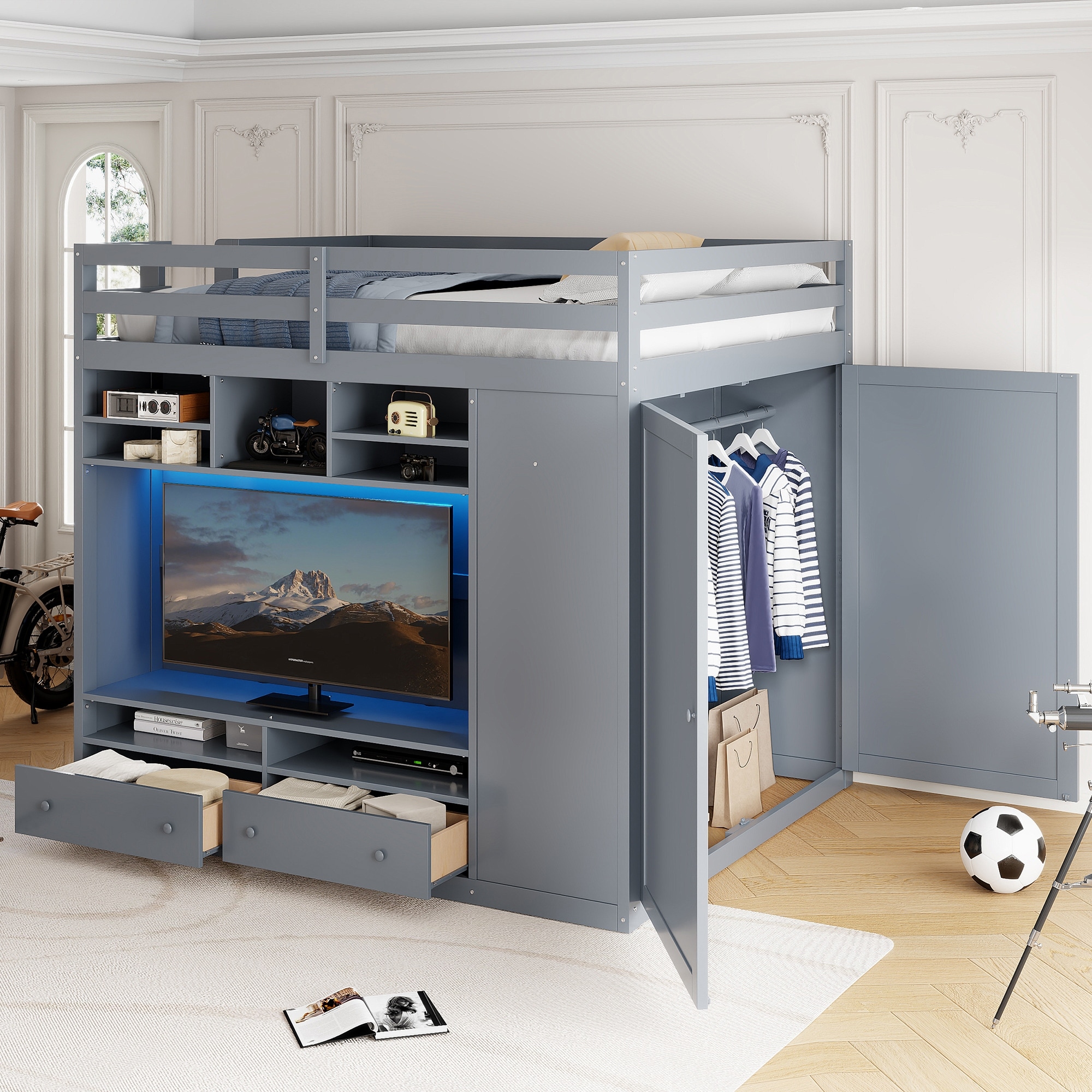 MimiHaven Full Loft Bed with Storage Drawers Shelves and Adjustable LED Lighting