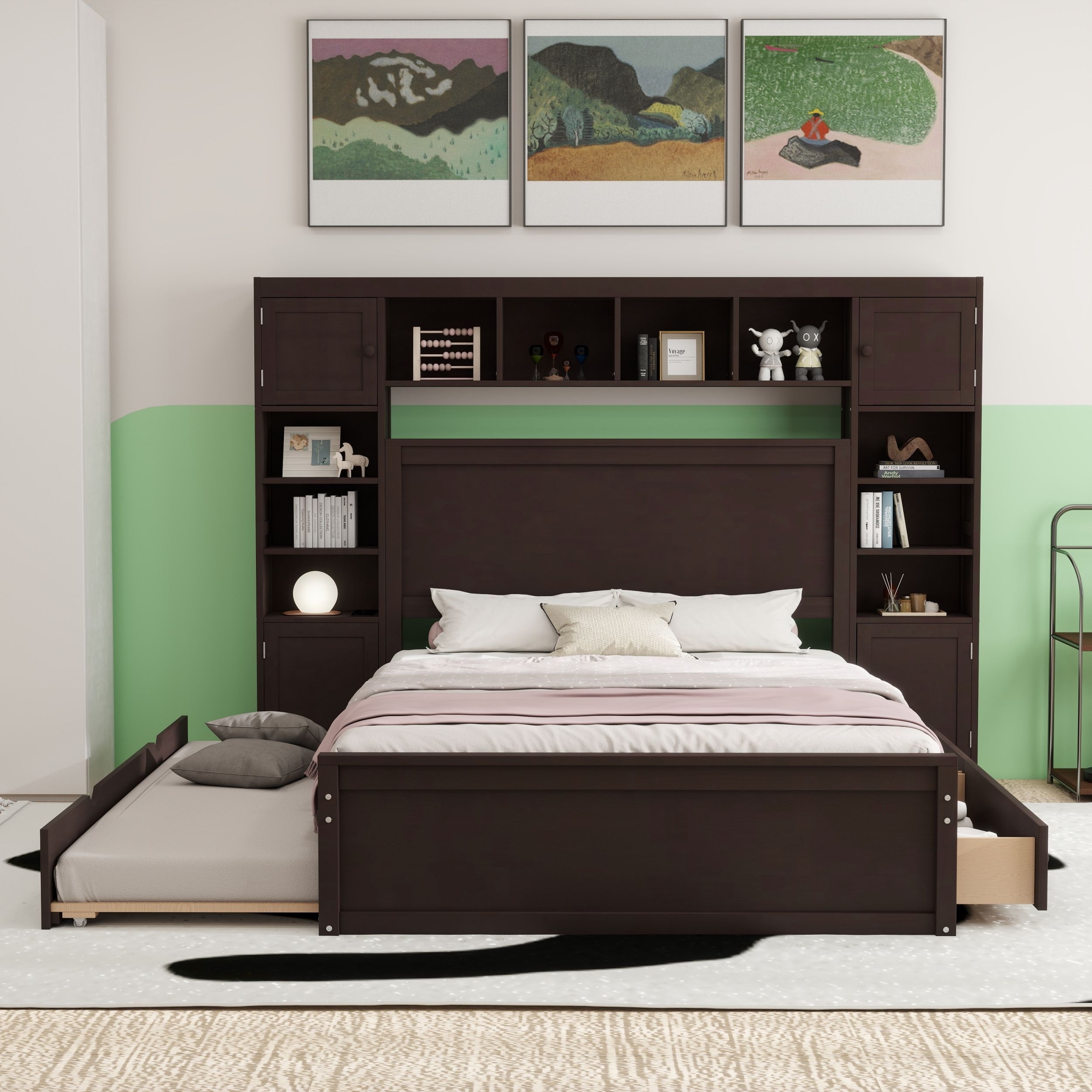 Modern Platform Bed with Integrated Cabinet and Drawers