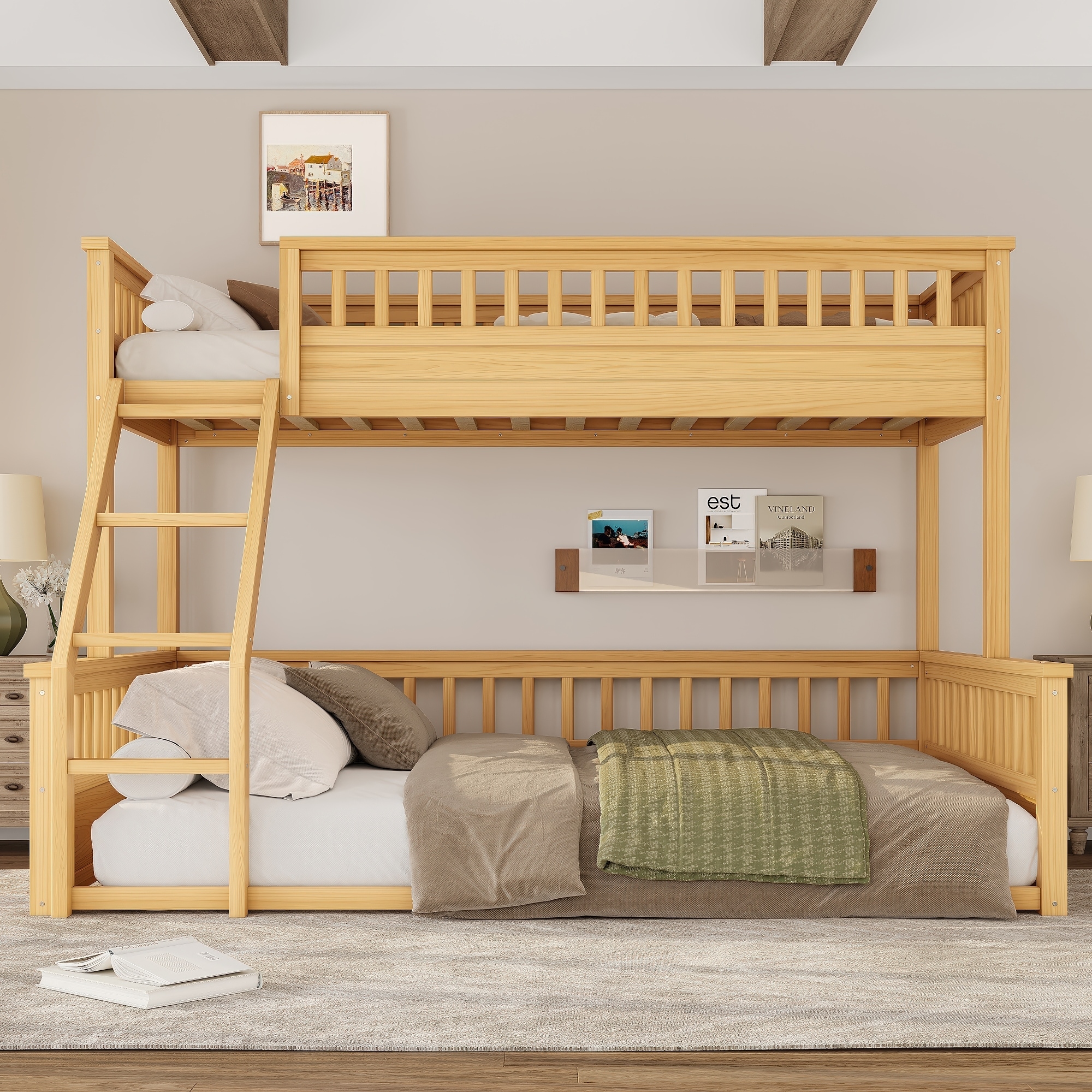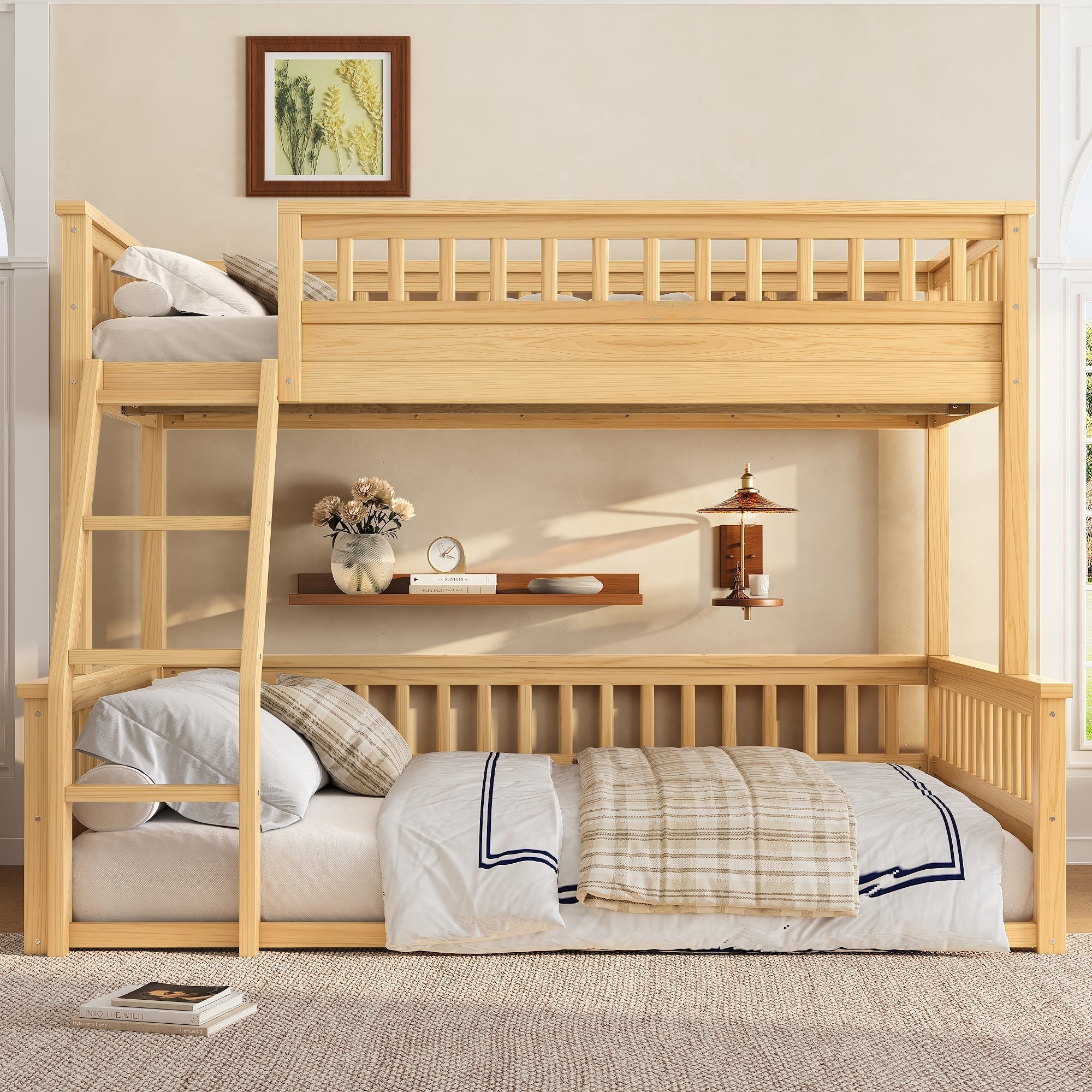 Kids Bunk Bed Wooden Bunk Bed with Ladder and Guardrails