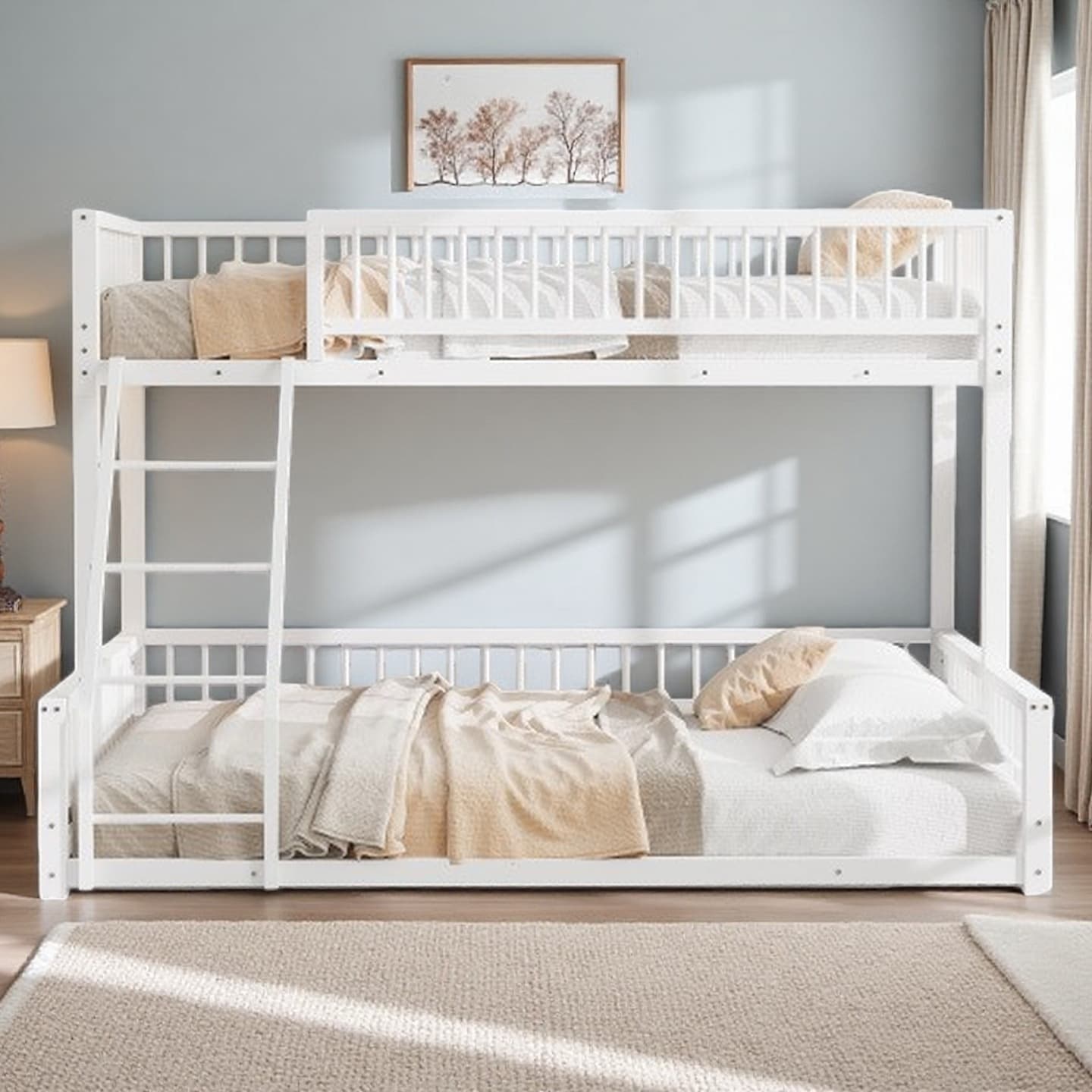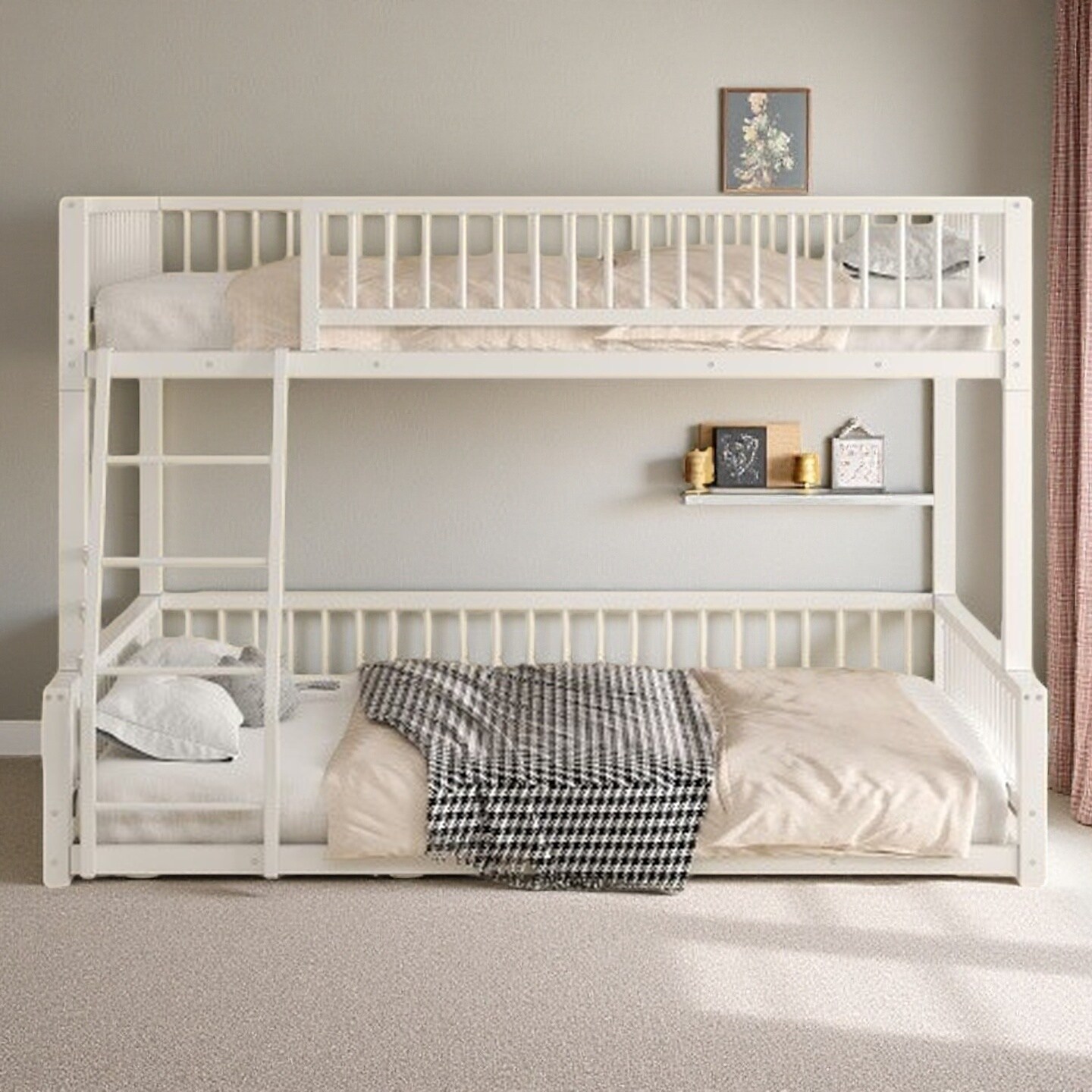 Twin over Twin Floor Bunk Bed with Storage Ladder