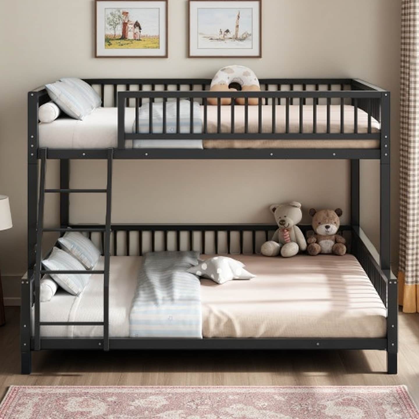 Twin Size Low Bunk Bed for Kids, No Box Spring Needed