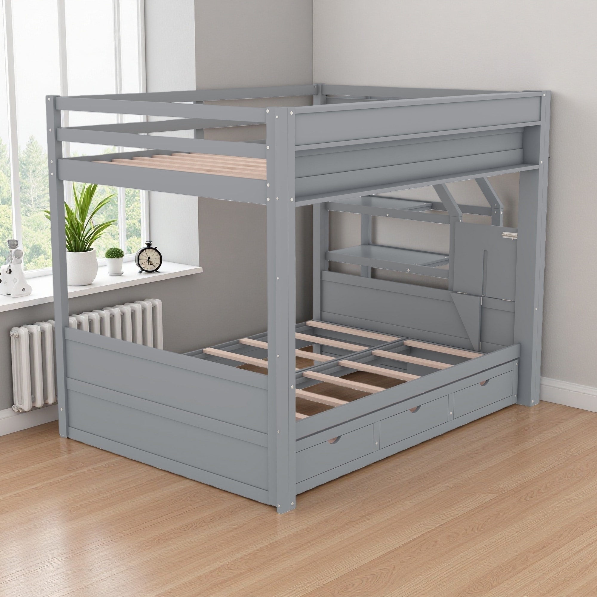 Twin over Full Bunk Bed with Trundle and Built-in Desk