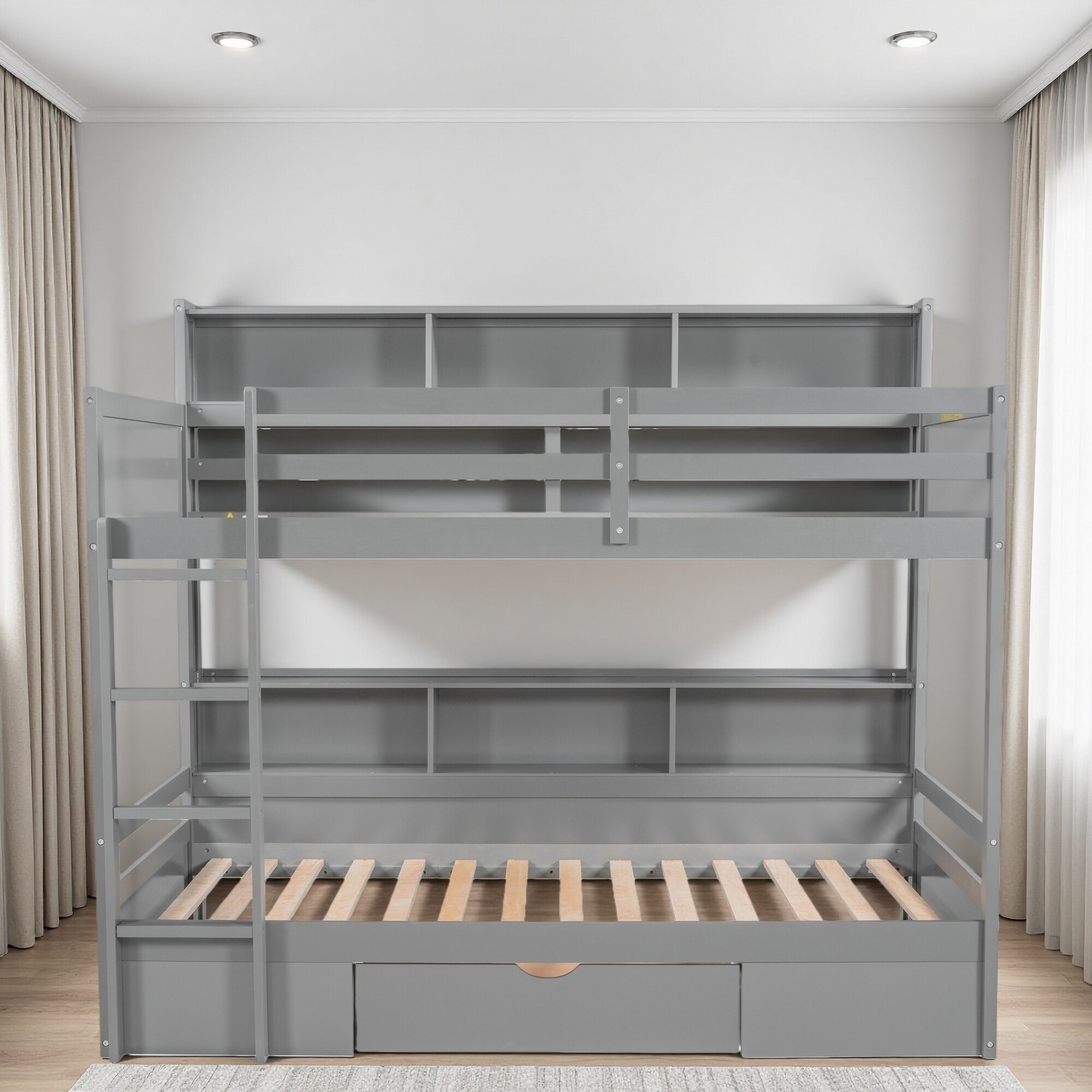 Twin over Twin & Twin Triple Bunk Bed with Built-in Storage Staircase