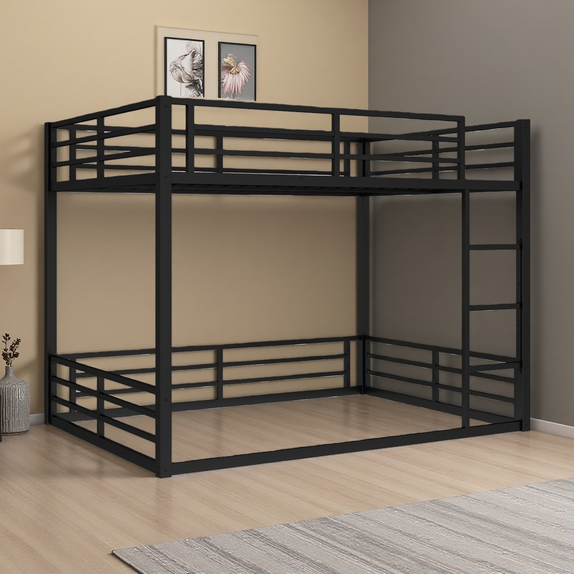 Queen over Queen Metal Bunk Bed with Noise Reduction and No Box Spring Needed