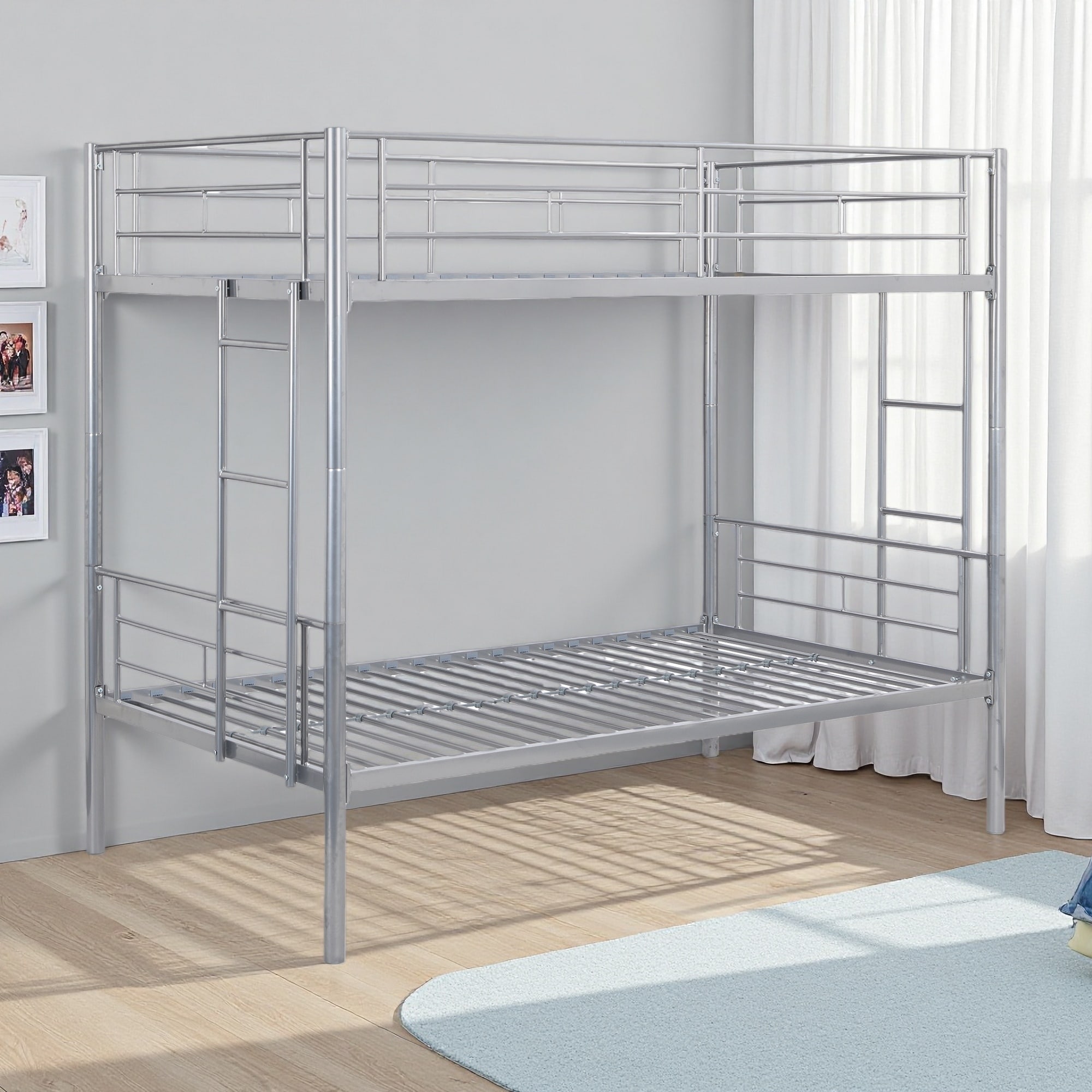 Roomfitters Twin/Full Over Twin Metal Bunk Bed with Slide, Guardrails, and Space-Saving Design