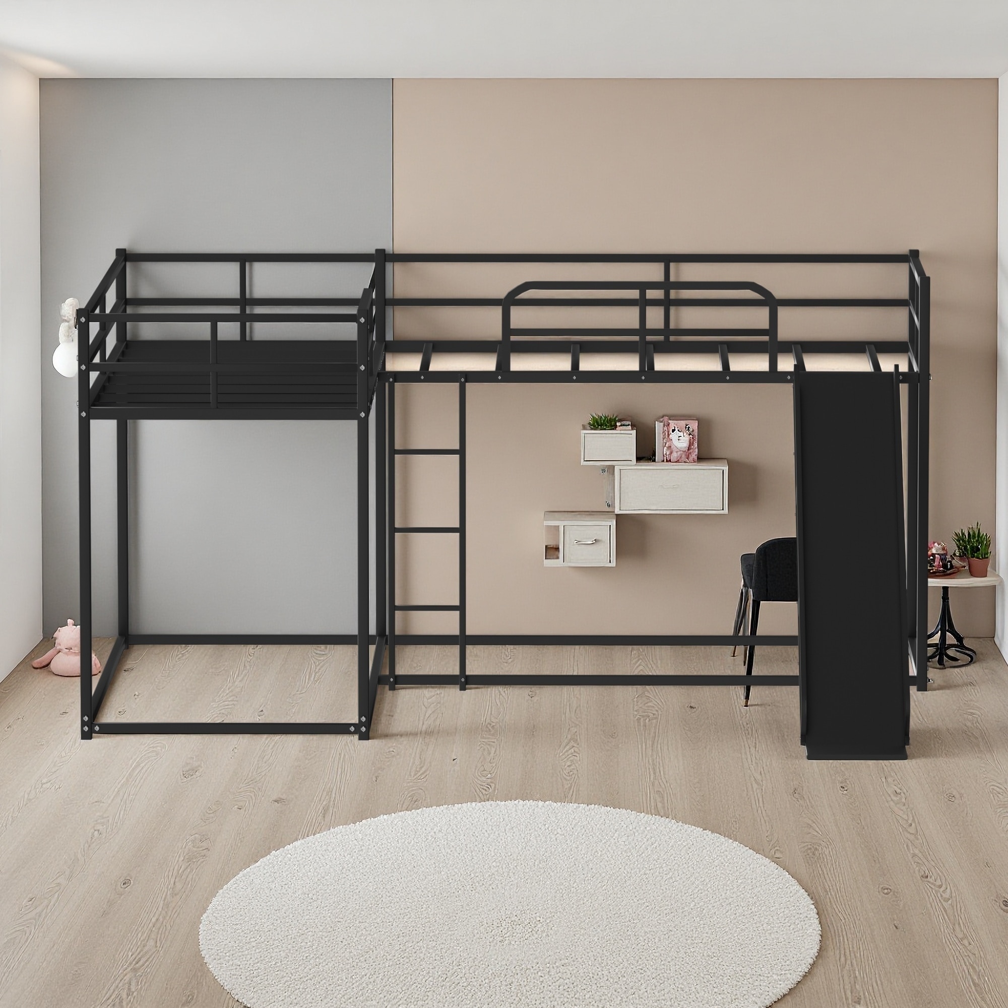Twin Metal L-Shaped Bunk Bed with Slide