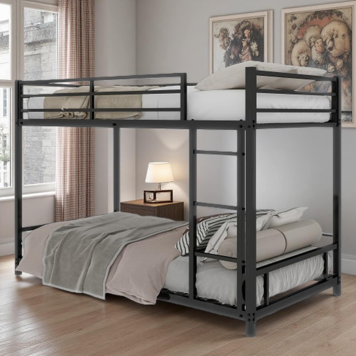 Twin Over Twin Metal Bunk Bed with Safety Guardrails, Sturdy Construction, Noise-Reduced, No Box Spring Needed, Black