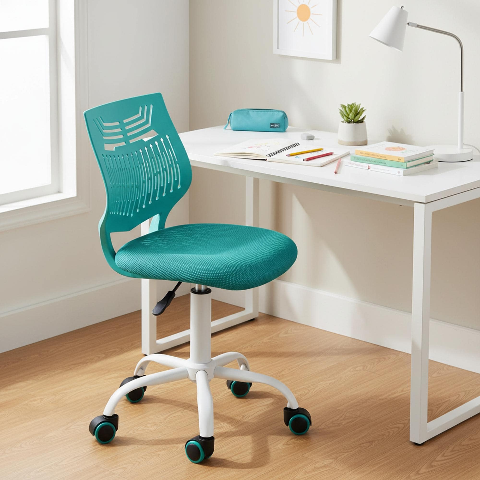 HomyLin Plastic Mesh Adjustable Armless Desk Chair with Rolling Wheels Kids Teen