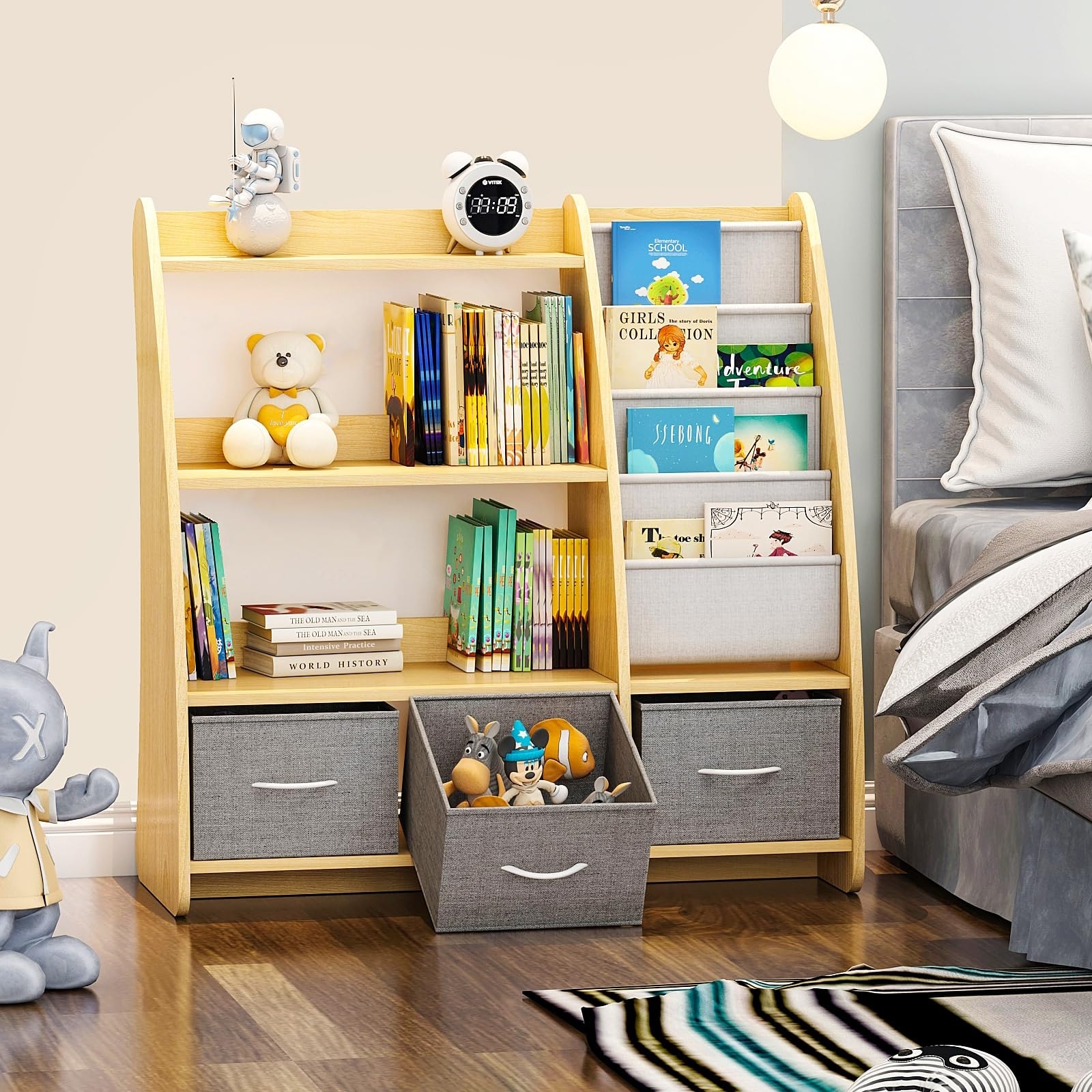 Kids Toy Storage Organizer w/Bookcase Wooden Toy Storage Unit