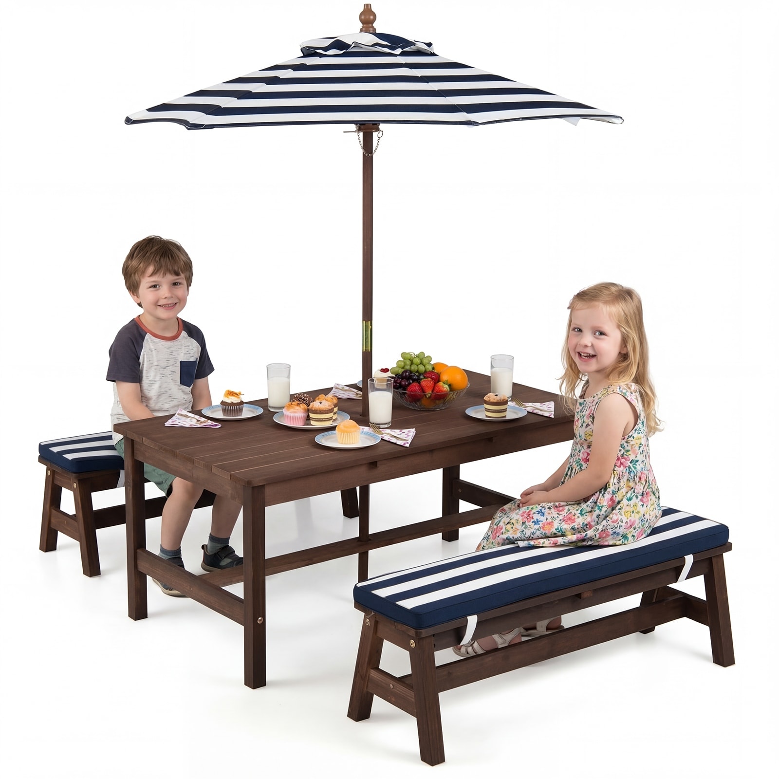 Gymax Kids Picnic Table Outdoor Wooden Table & Bench Set w/ Removable