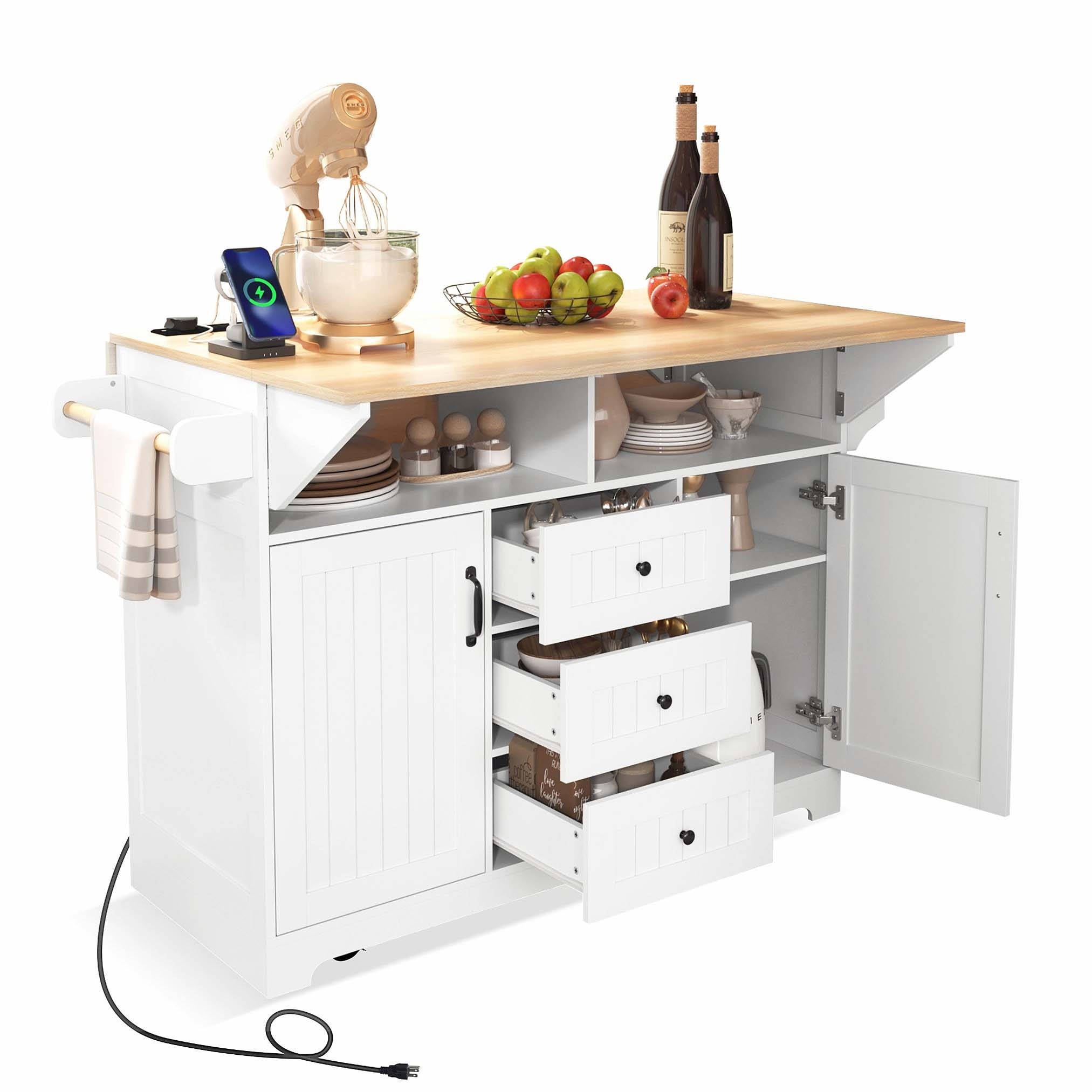 Versatile Folding Kitchen Island with Abundant Storage and Power Supply for All Kitchens