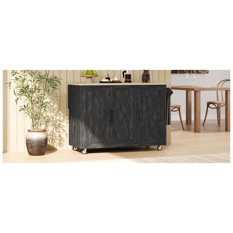 Multi-Functional 74.8" Kitchen Island with Extendable Table – 3 Drawers, Power Outlet & Mobile Design
