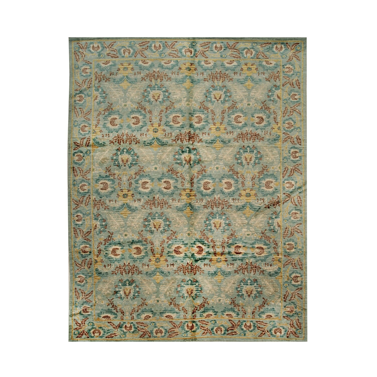 Green Handwoven Wool Transitional Rug 9' x 11'8 - Hand Knotted Spun Wool Surged Edge Elegant Design - N/A