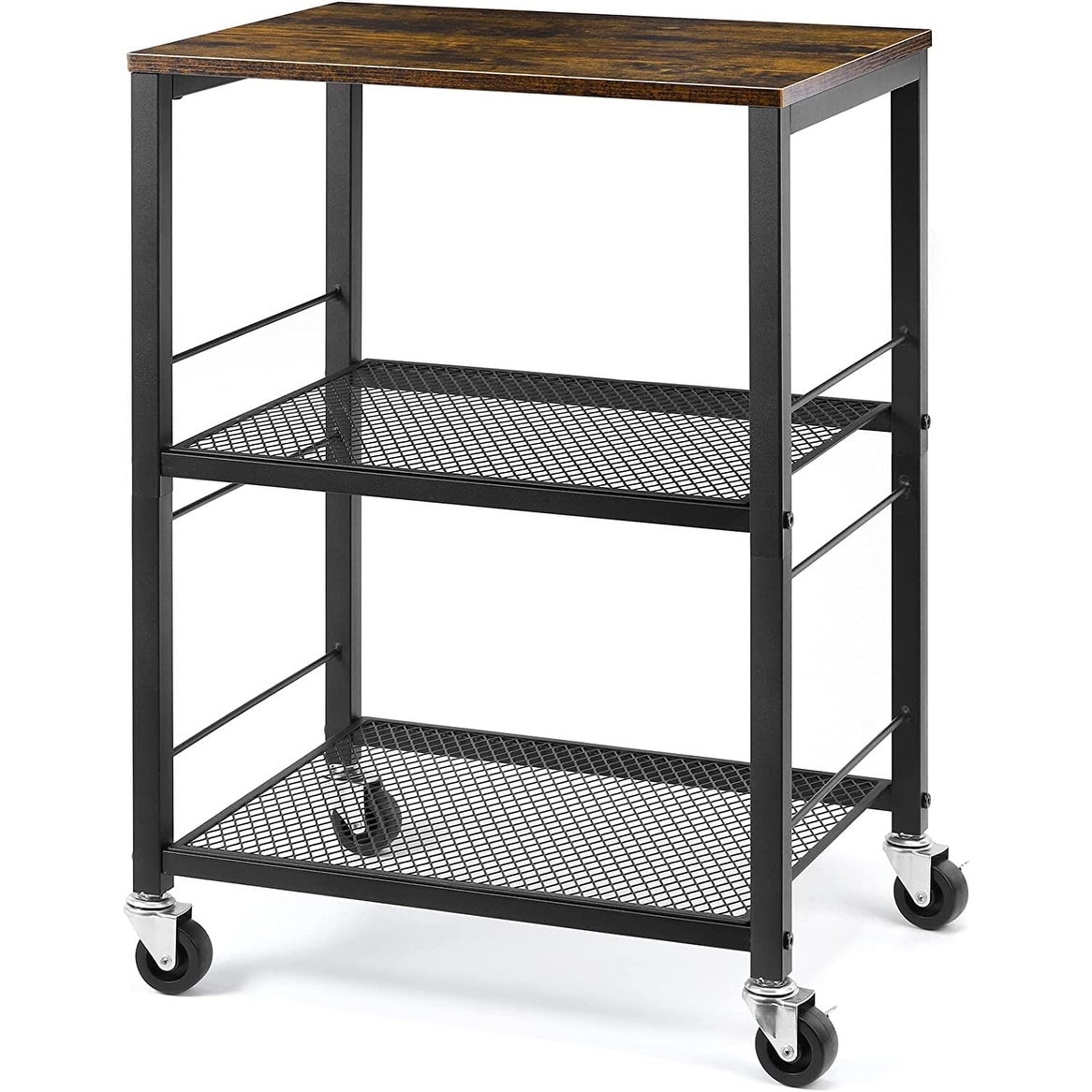 3-Tier Rolling Serving Bar Cart, Wood and Metal Kitchen Island Storage Cart with Wheels, Multifunction Utility Drink Cart