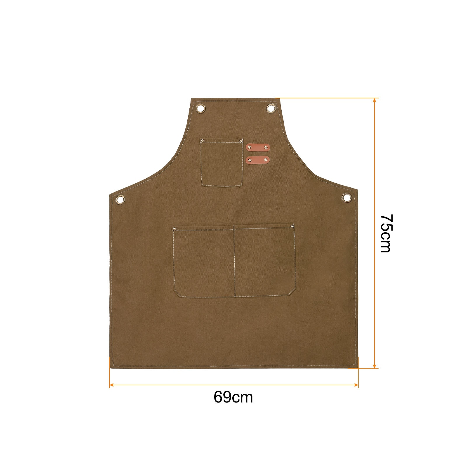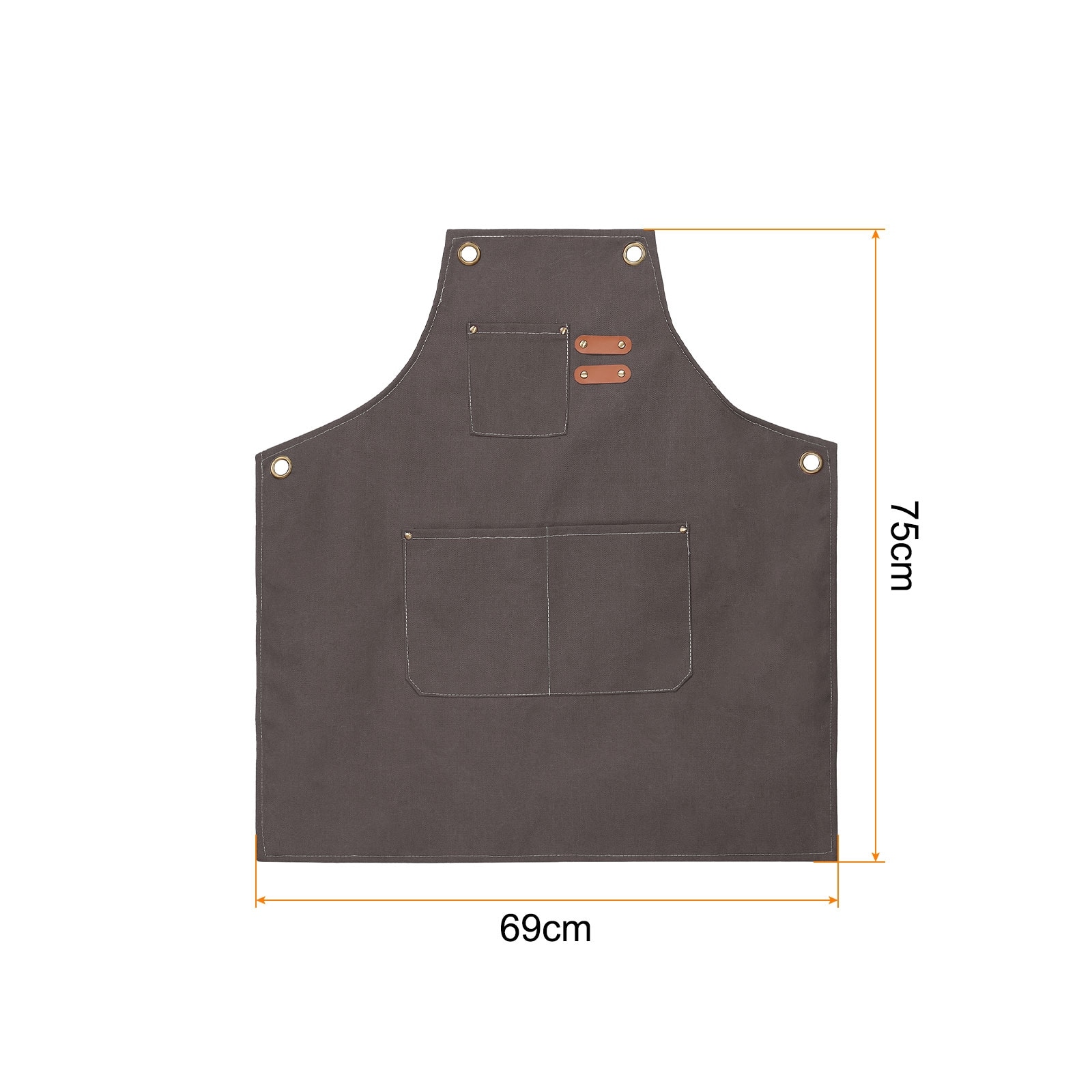 Canvas Chef Aprons 75x69cm Cross Back Kitchen Apron 3 Pockets - 75x68cm