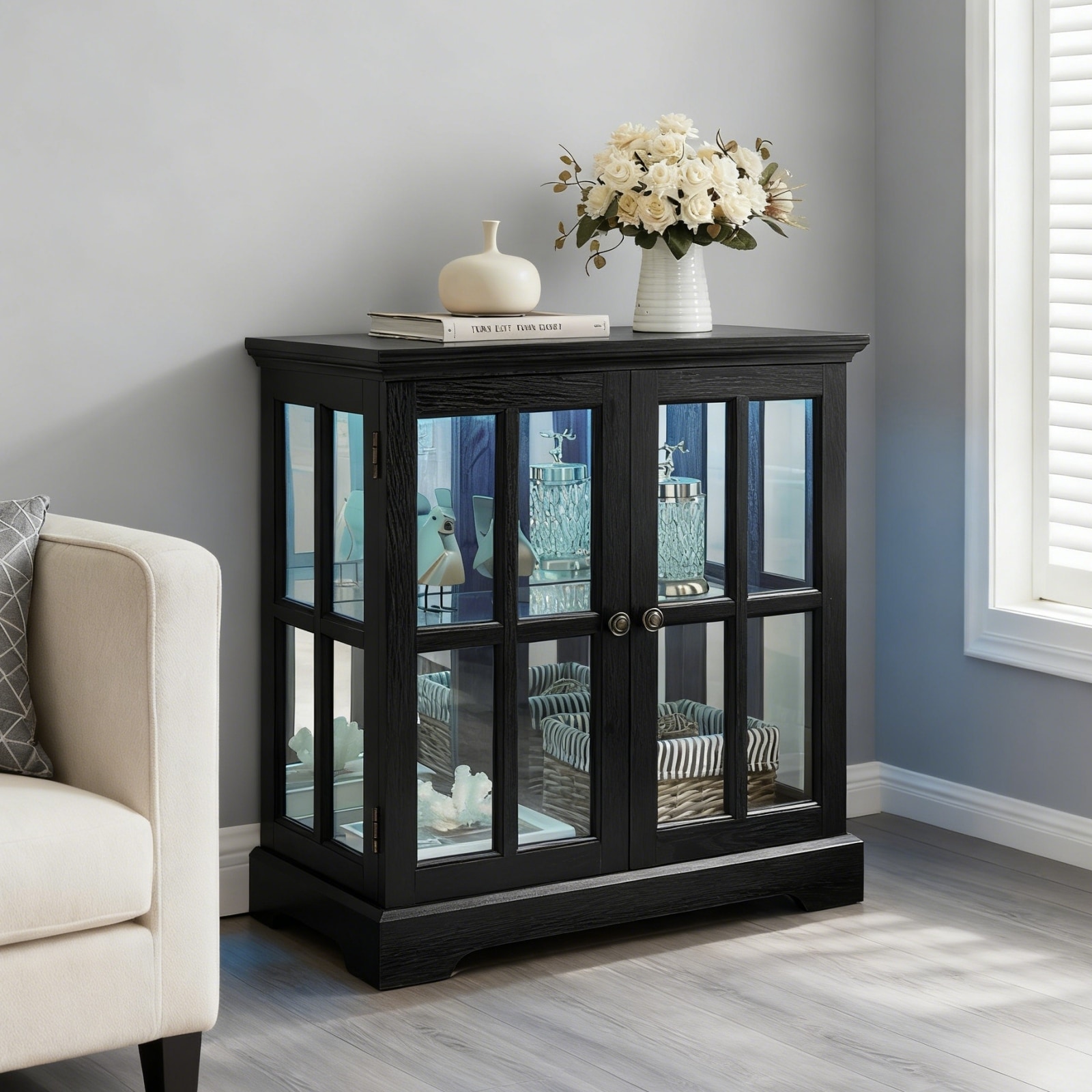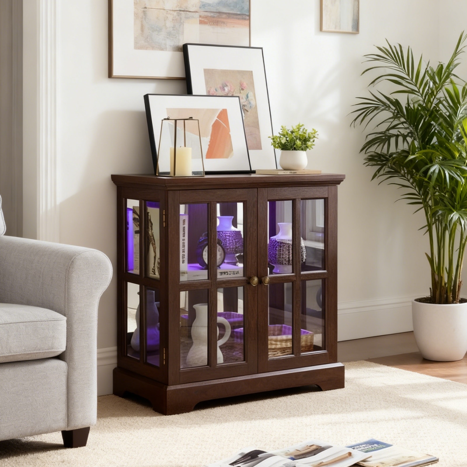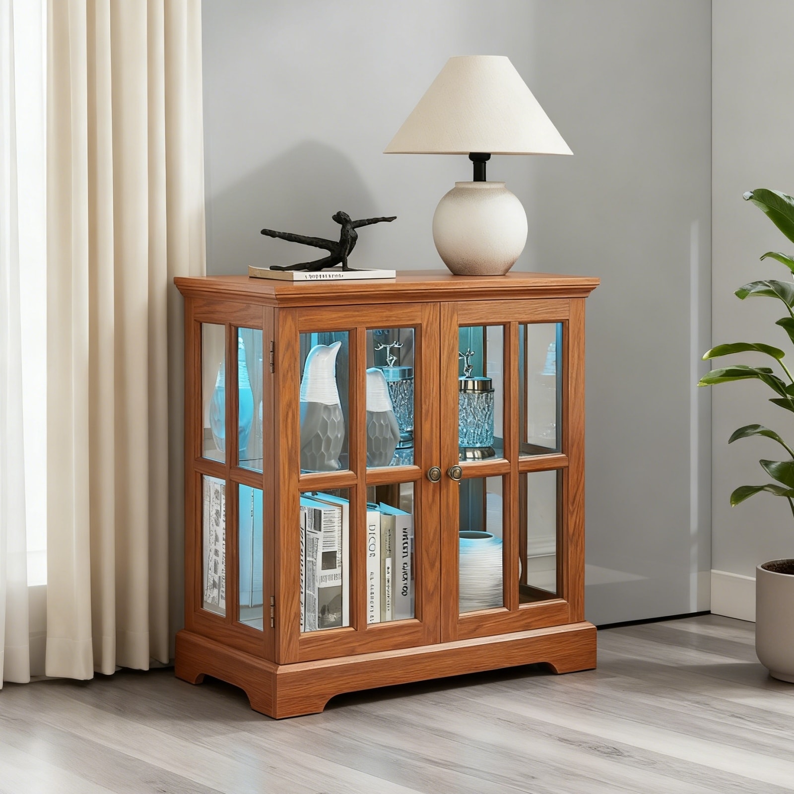 LED Glass Small Antique Curio Display Cabinet Showcase with Doors