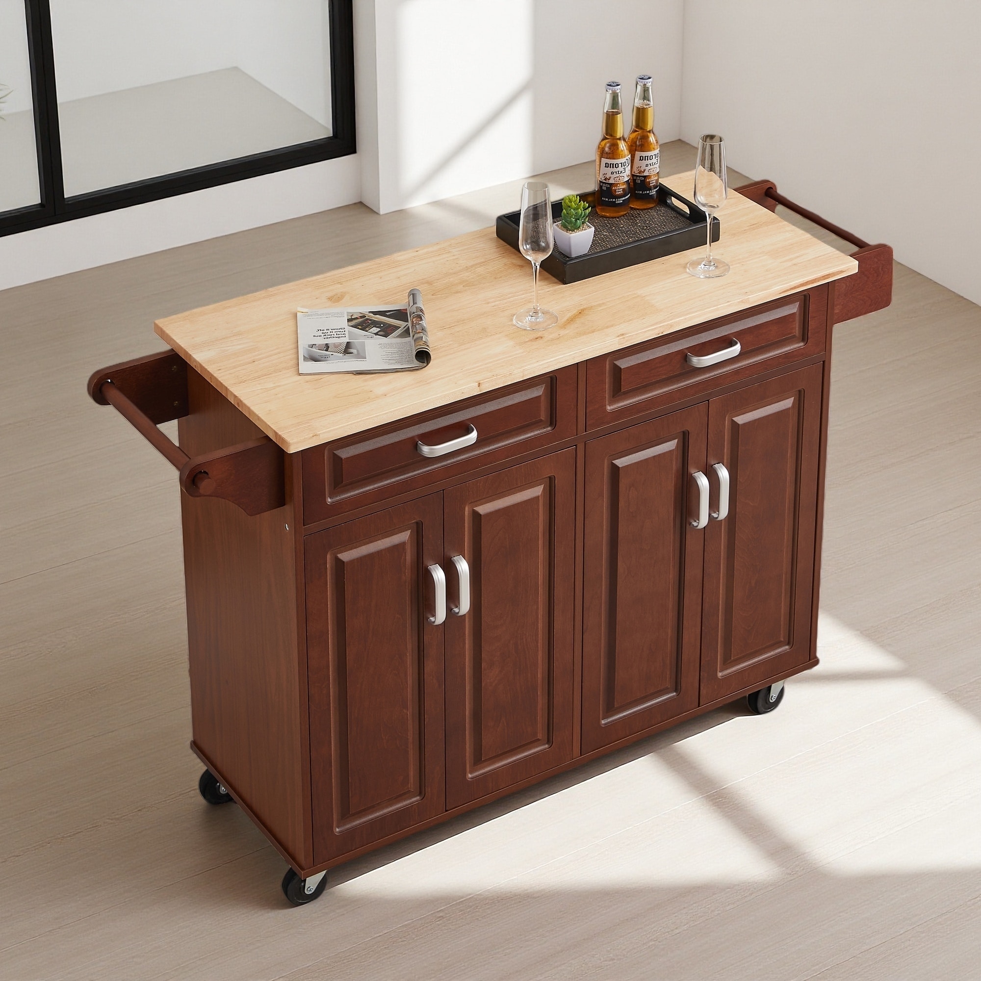 Kitchen Island with Solid Wood Top and Locking Wheels