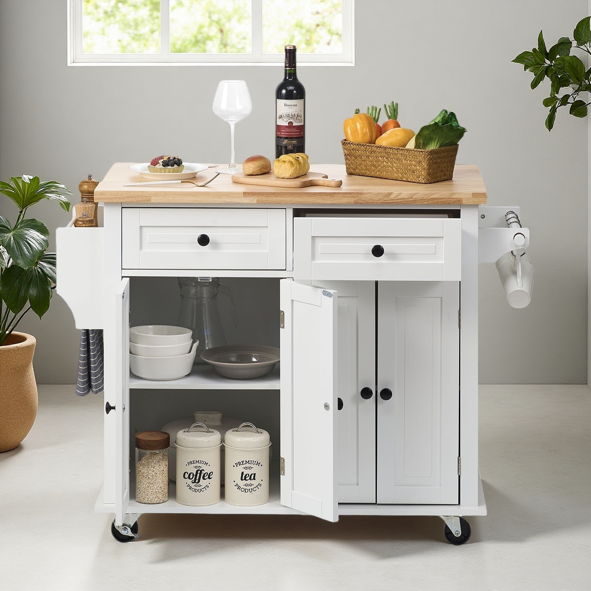 Kitchen Island Cart with Wood Top & Storage - Portable Kitchen Island, Modern Kitchen Furniture