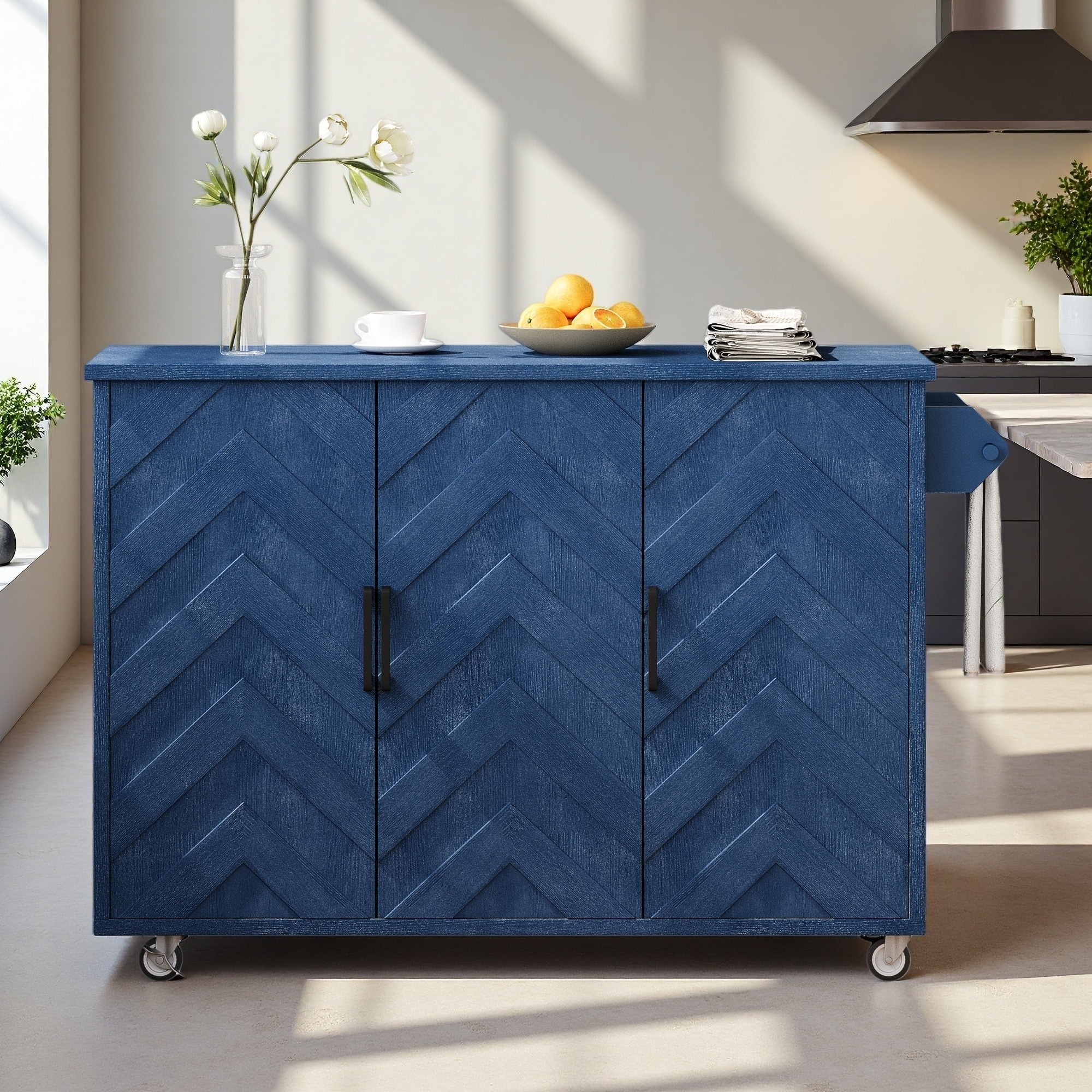 Rolling Kitchen Island with Drop Leaf & Tilt Out Trash Can Cabinet