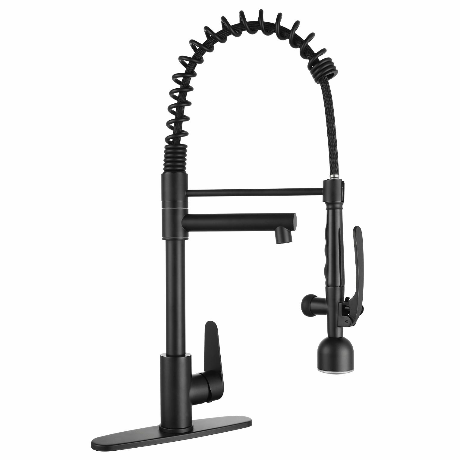 Single Handle Kitchen Sink Faucet,Commercial Kitchen Faucet Pull Down Sprayer Black and Nickel