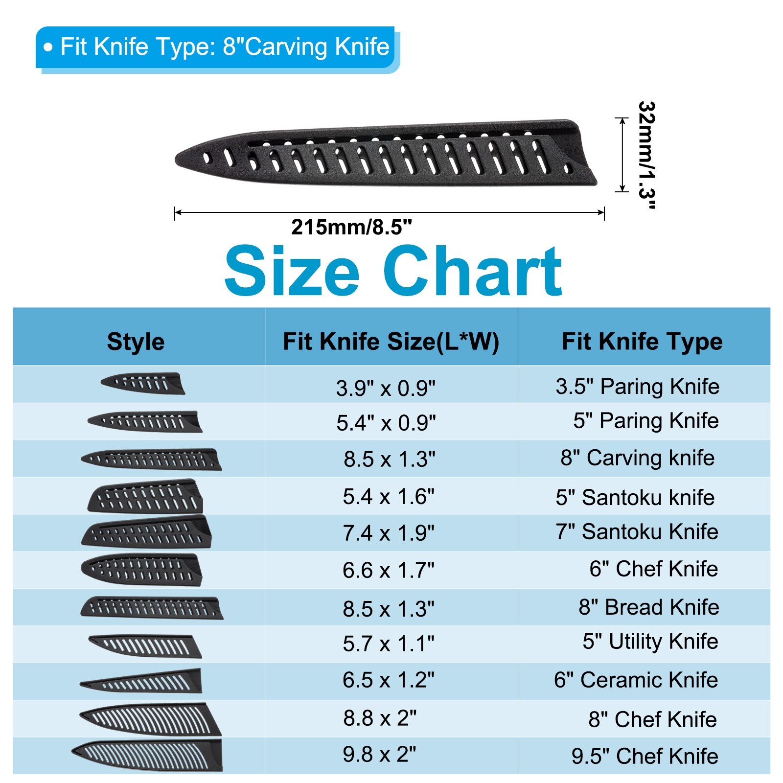 PP Safety Knife Cover Sleeves for Carving Knife, Guard Blade Protector Universal Knife Sheath Portable for Kitchen - Black