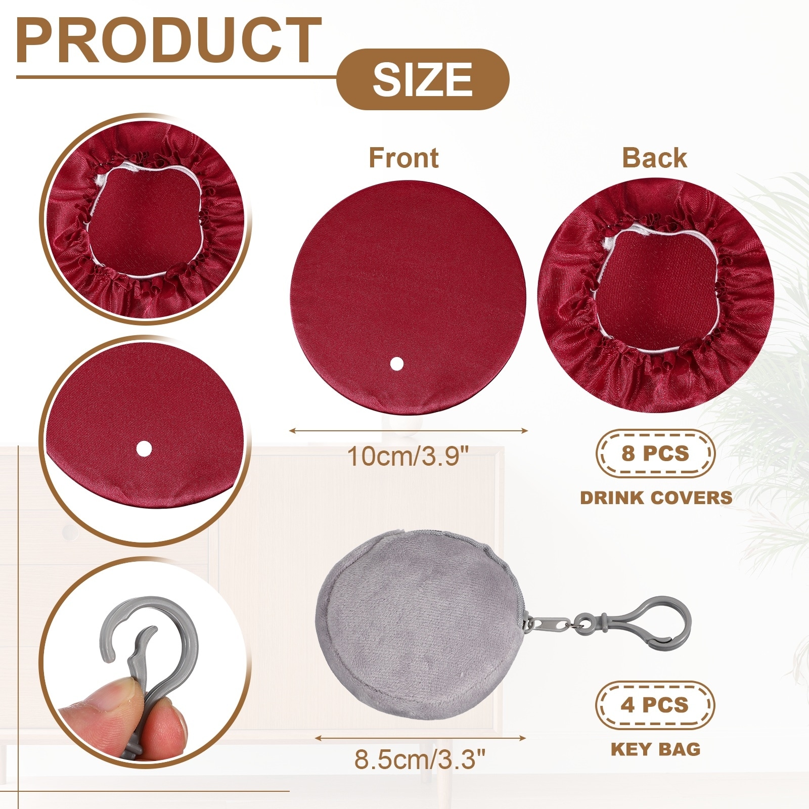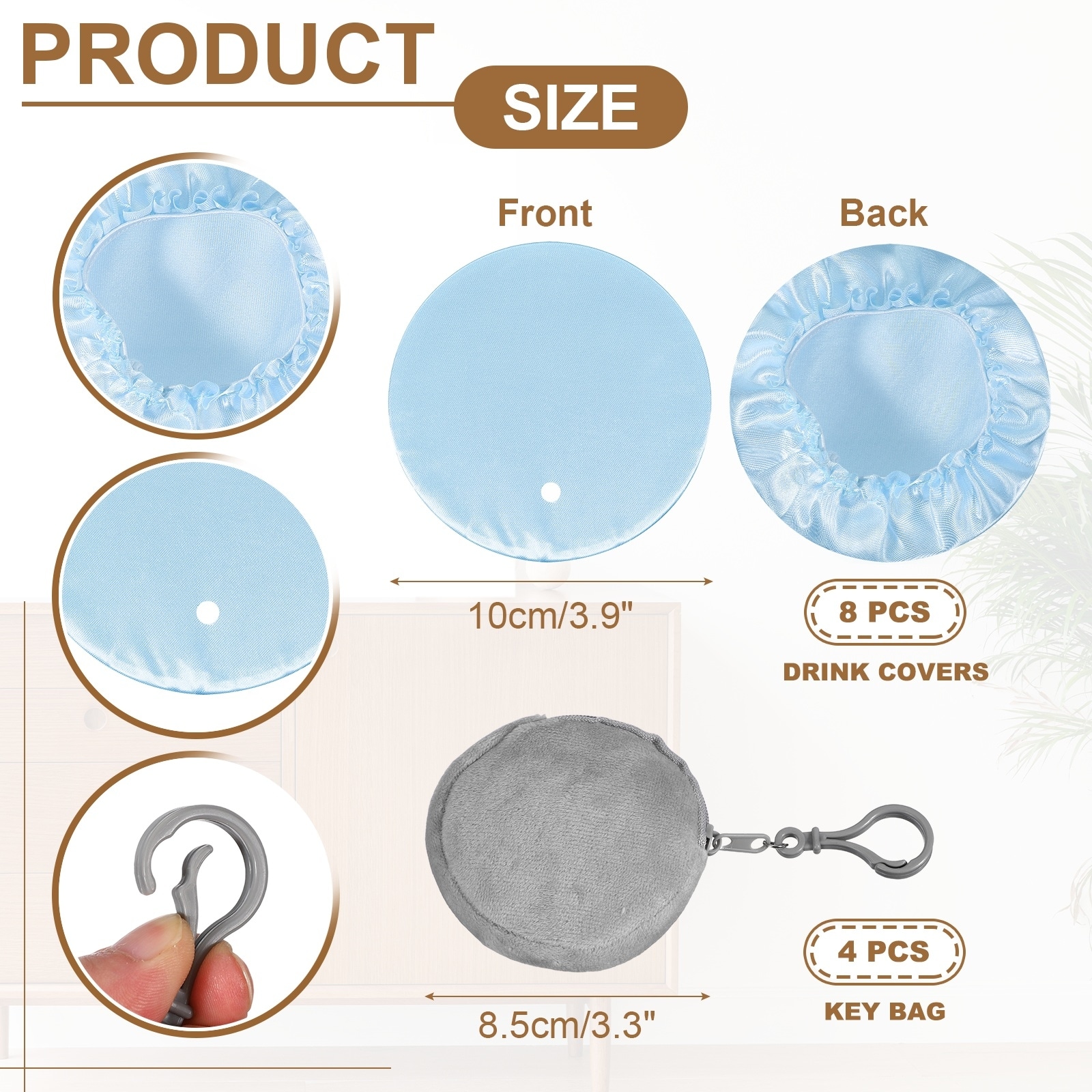 Drink Covers Scrunchie, Reusable Cup Cover with Key Bag - 10x10, 8.5x8.5cm