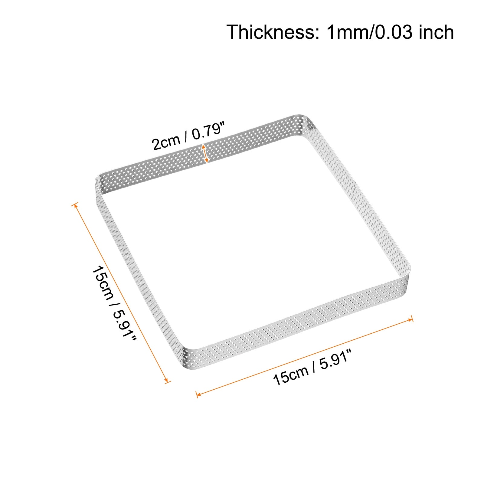 2pcs Perforated Cake Rings 1.97" Stainless Steel Square Tartlet Ring - Silver