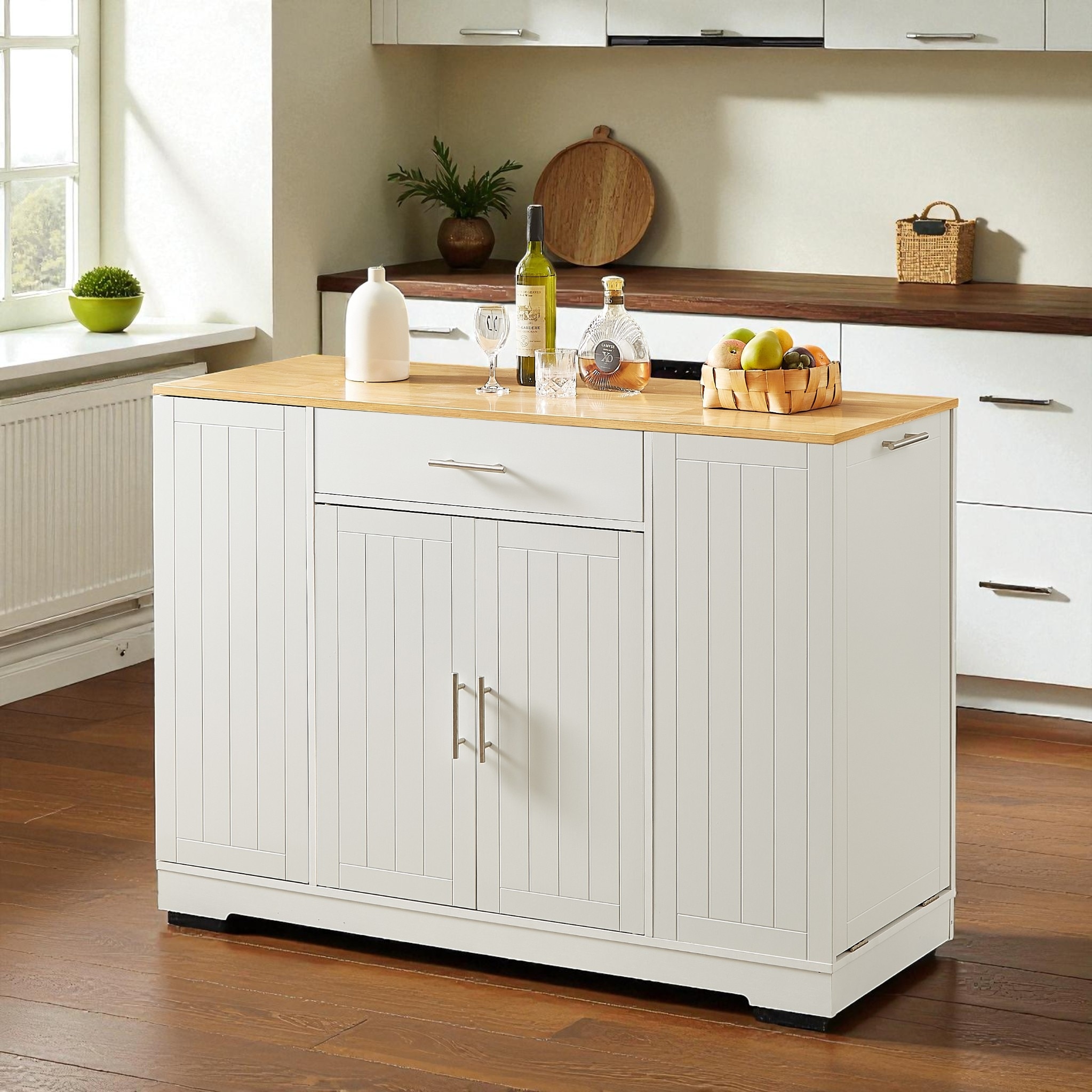 Kitchen Island 41" H, 2 Bottle Organizer and Shelf, White / Macadamia