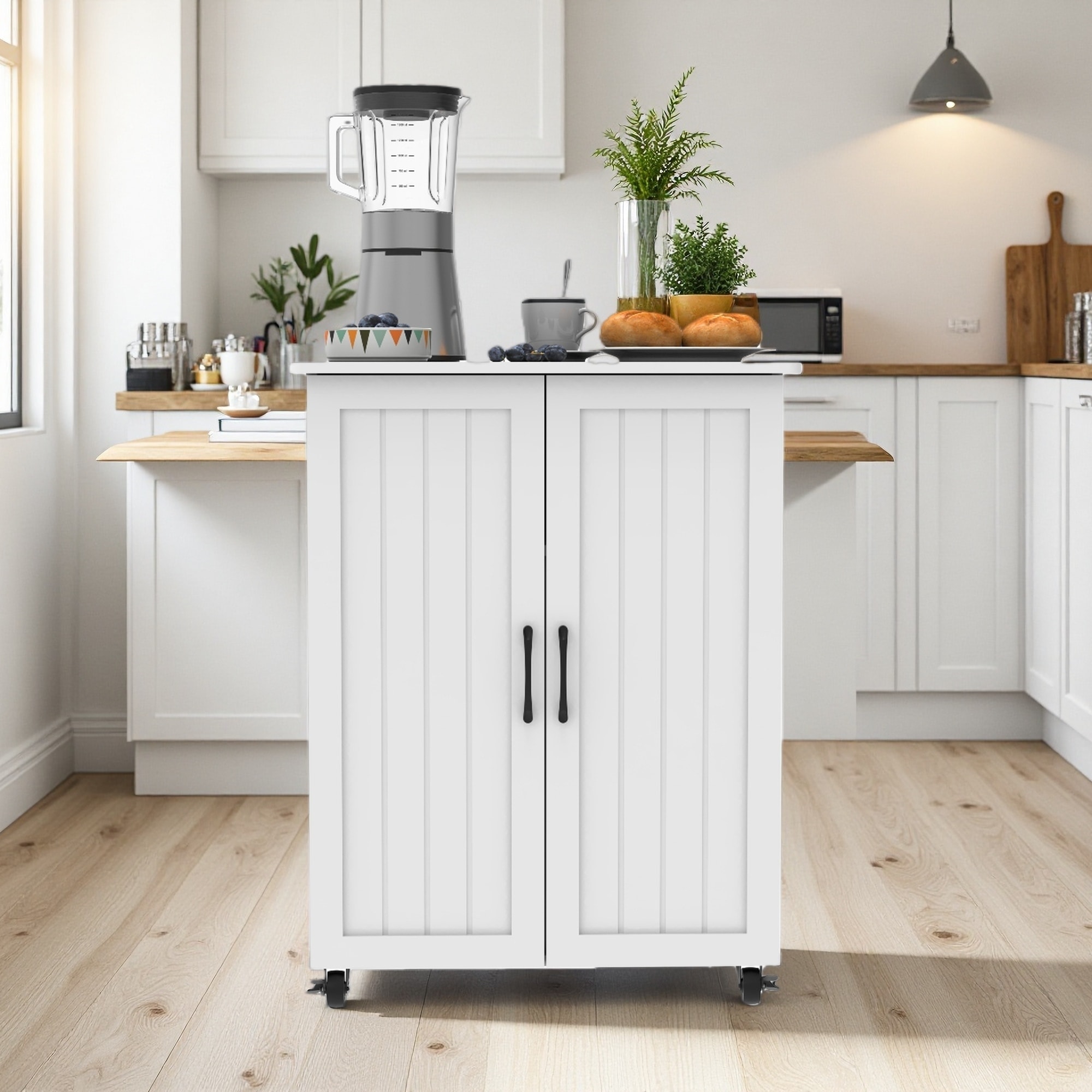 Rolling Kitchen Island with Storage Cabinet & Drawers – Mobile Storage Cart with Extendable Countertop
