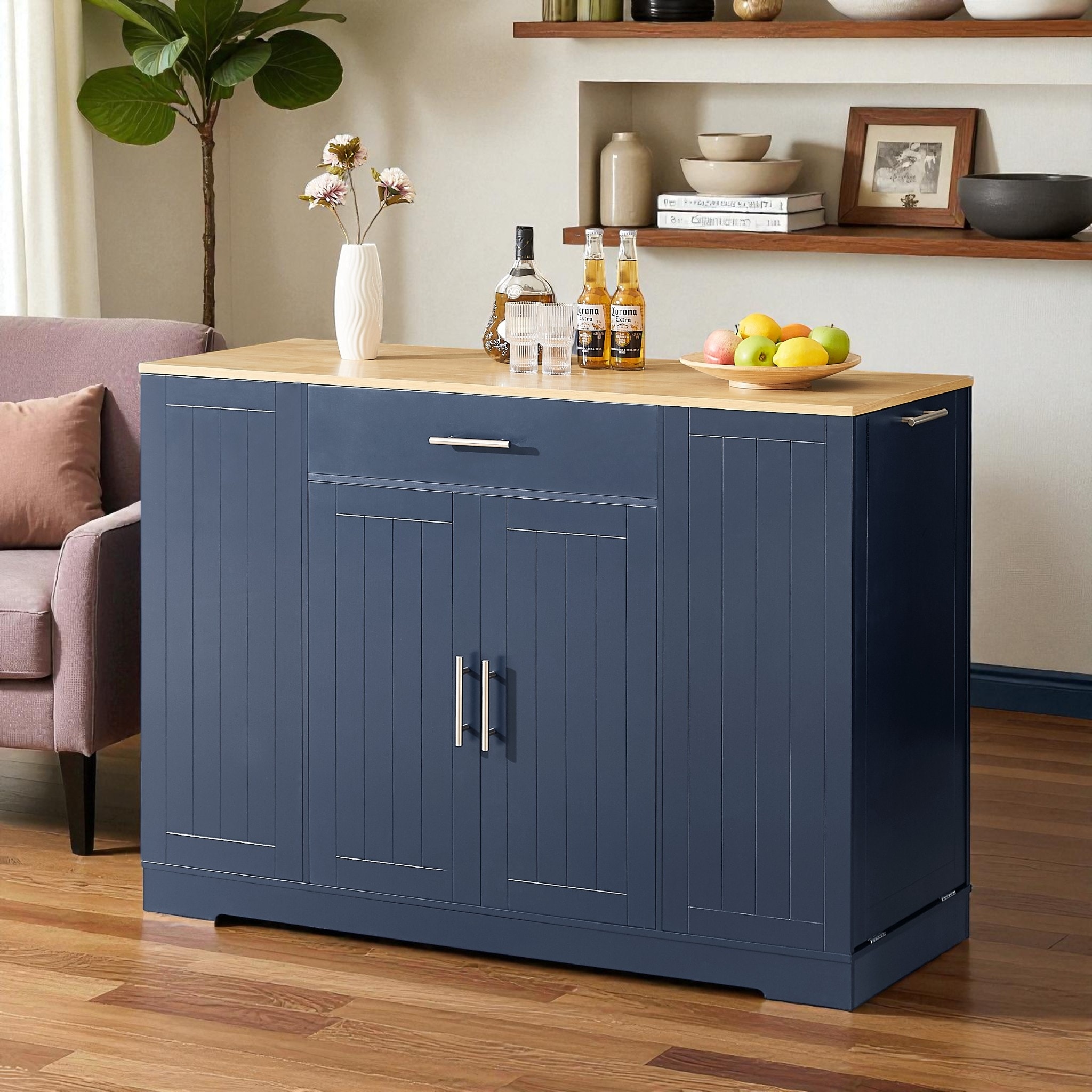 53in. Rolling Kitchen Island with Drop Leaf and Power Outlet