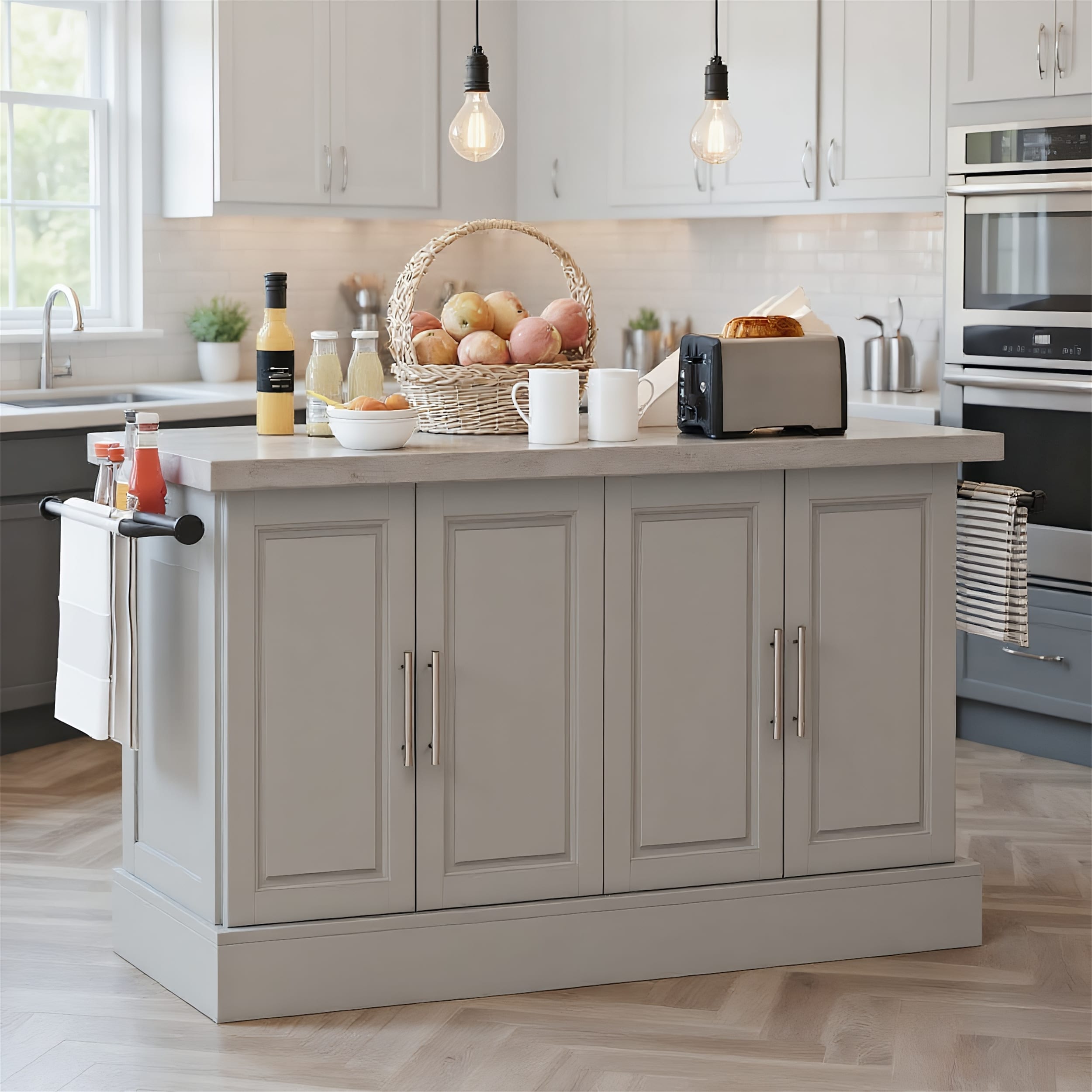 Kitchen Island with Storage - Stylish Prep Station & Shelves - 35.4" H x 40.5" W