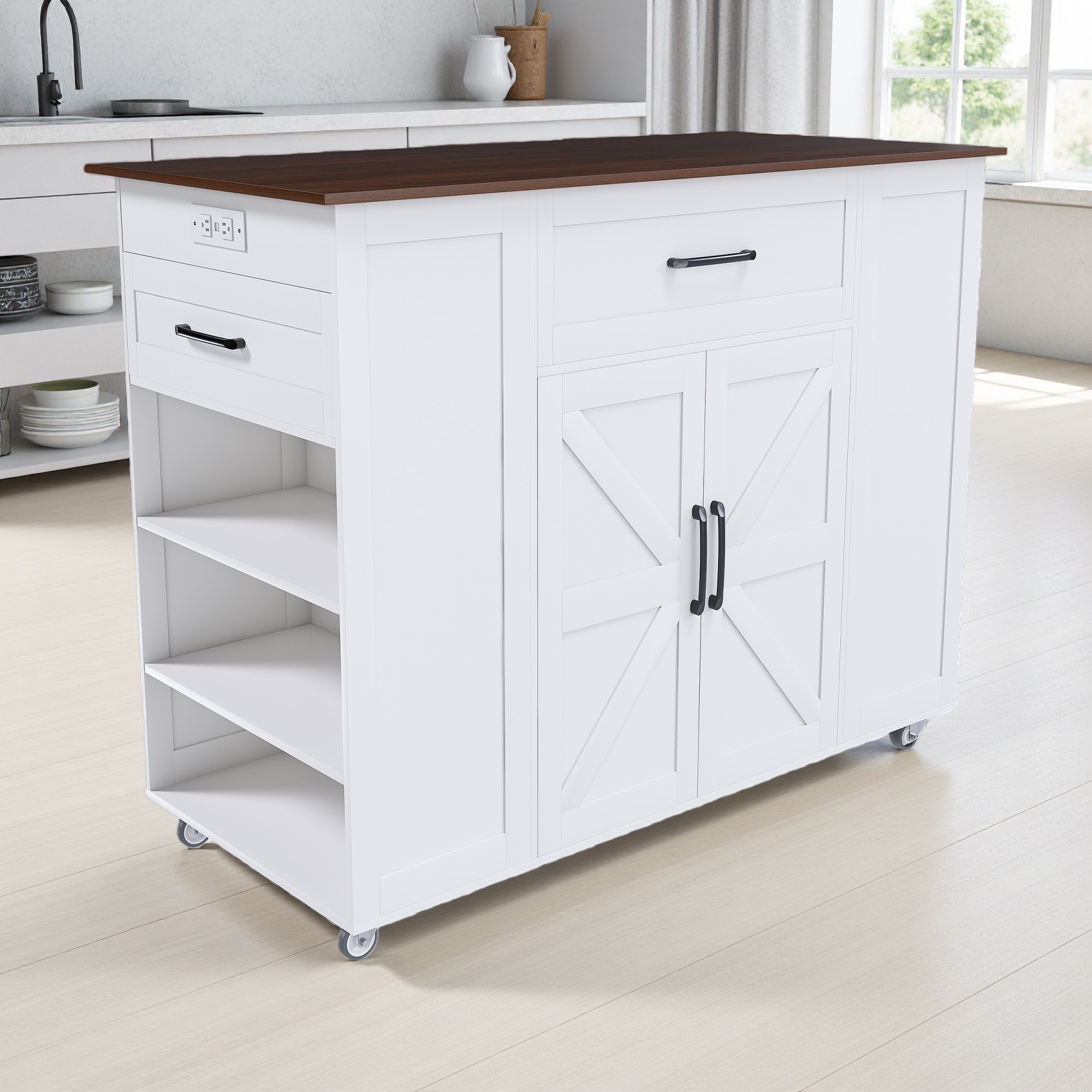 Roomfitters 53.3" Farmhouse Kitchen Island with Power Outlet and Drop Leaf