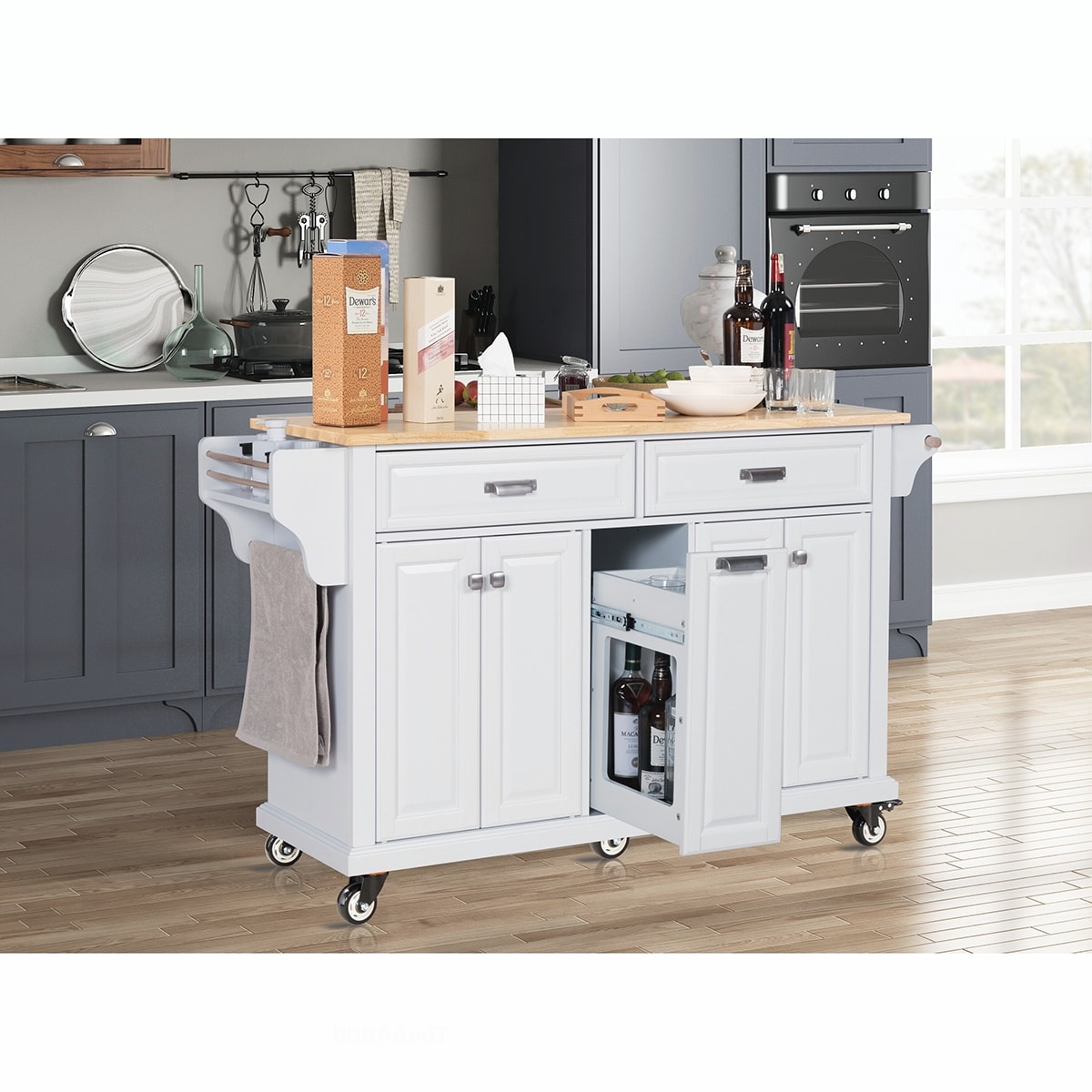 52.7" Kitchen Island Cart with Drop Leaf & Solid Wood Top, Locking Wheels, Adjustable Shelves & Ample Storage