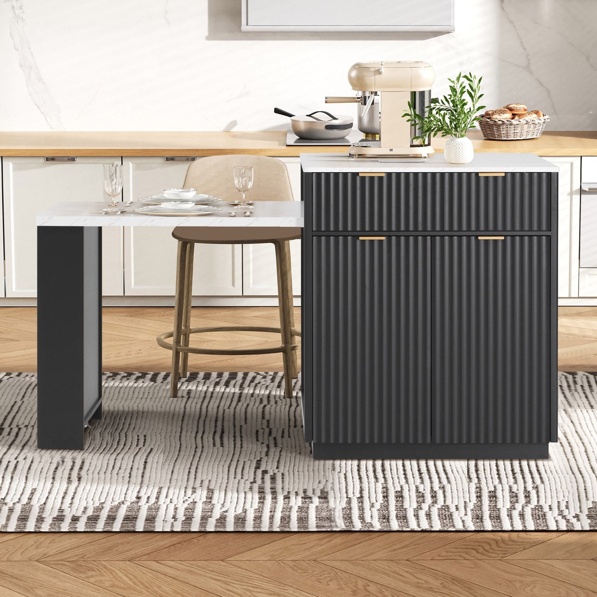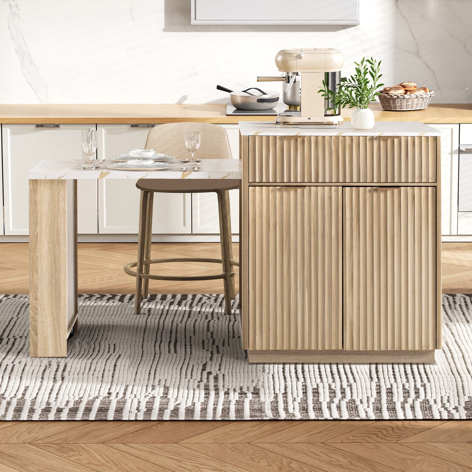 82.6" Fluted Kitchen Island with Extendable Dining Table for 4-6 with Power Outlet