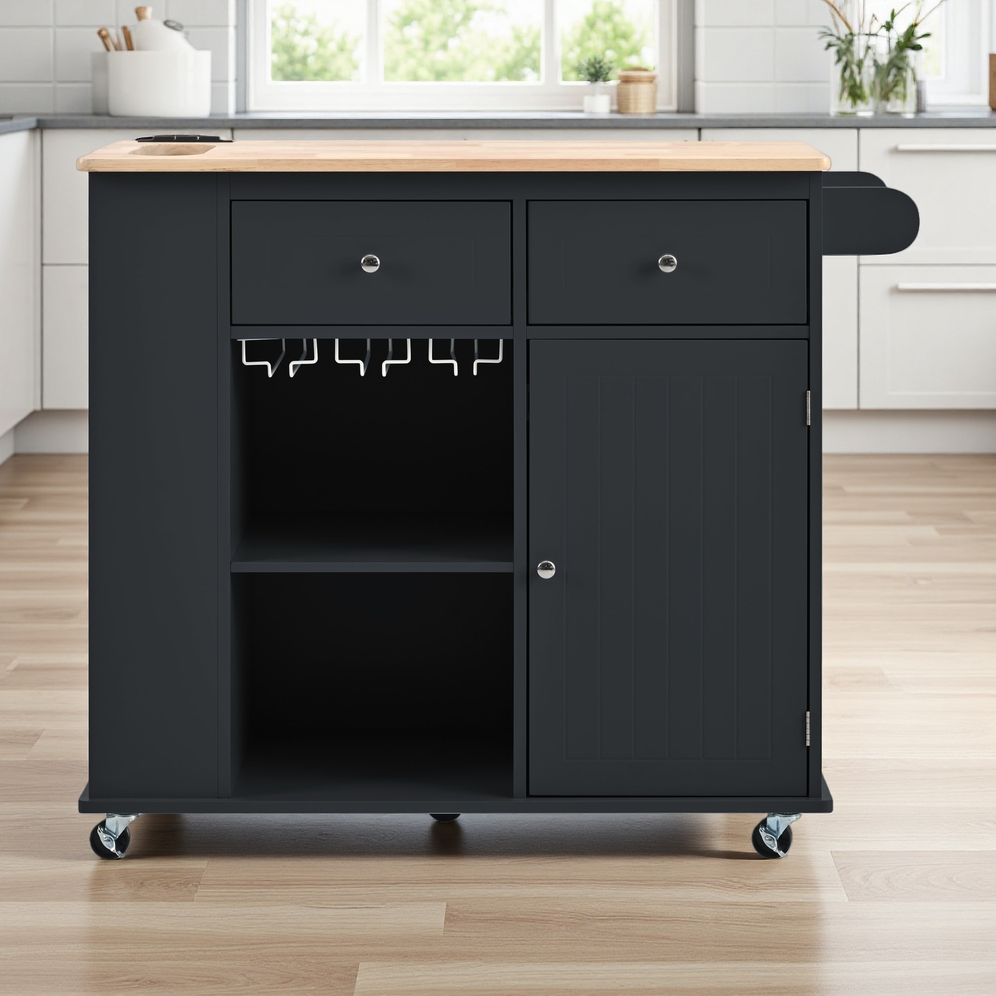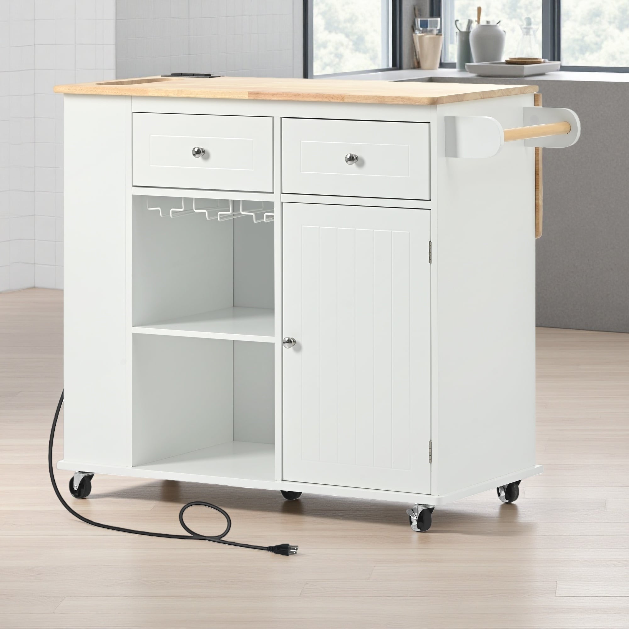 Kitchen Island Cart with Solid Wood Top and Locking Wheels
