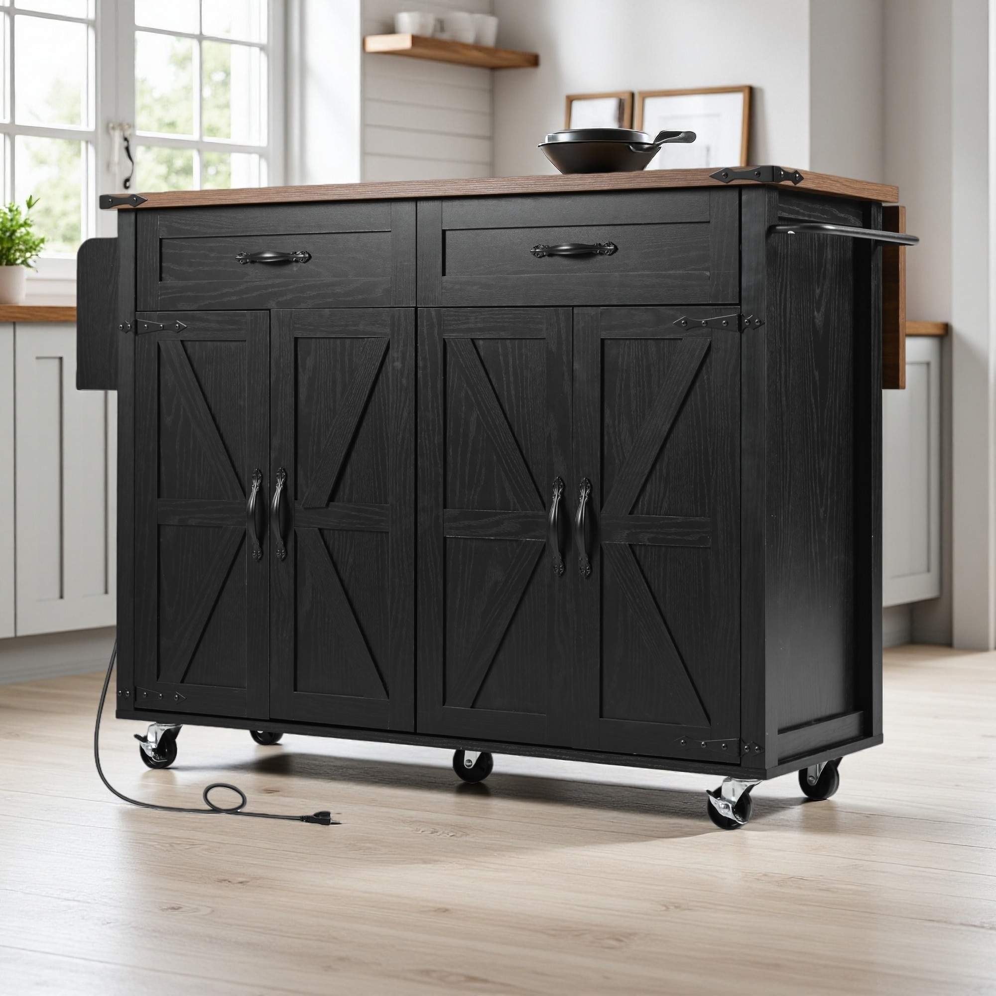 Kitchen Island, Rolling Bar Cart & Storage Cabinet, Farmhouse Solid Wood Outdoor Grill Table